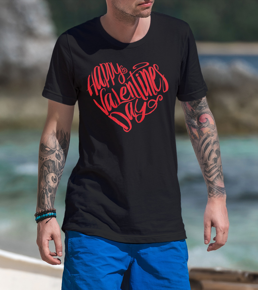 The Happy Valentines Day Red Heart Typography T-shirt is designed for everyday wear and a consistent fit. Fabric is pre-shrunk ring-spun cotton with durable stitching. See the size chart below for exact measurements.