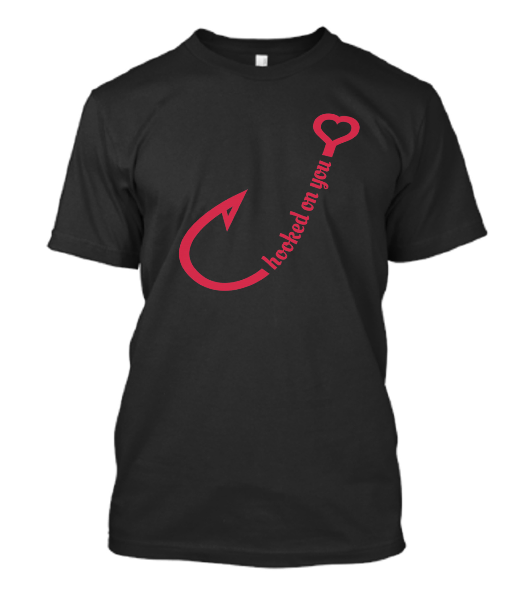The Hooked On You Heart Valentines Day Couples Hoo T-shirt is designed for everyday wear and a consistent fit. Fabric is pre-shrunk ring-spun cotton with durable stitching. See the size chart below for exact measurements.