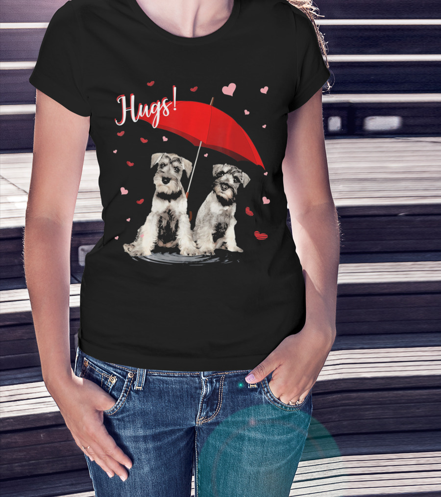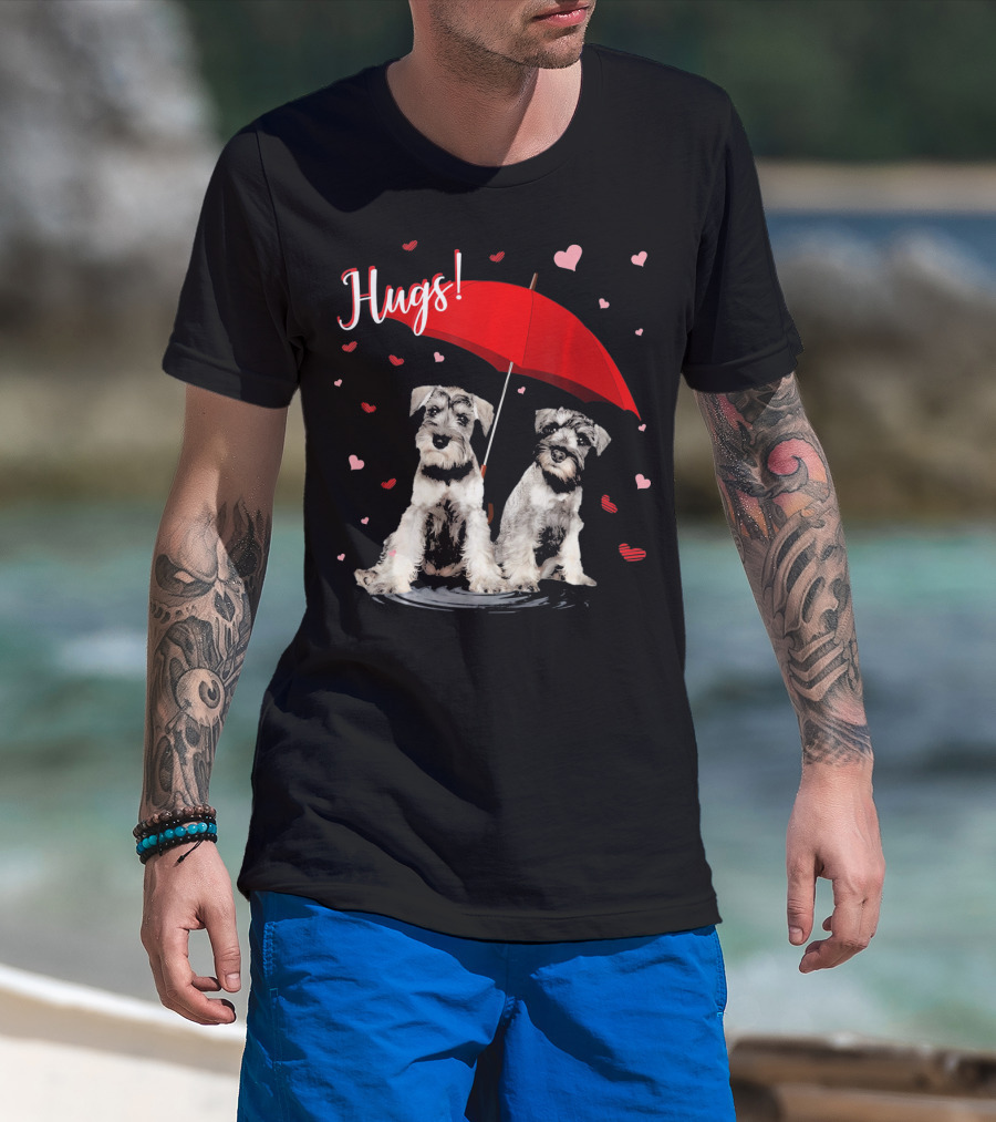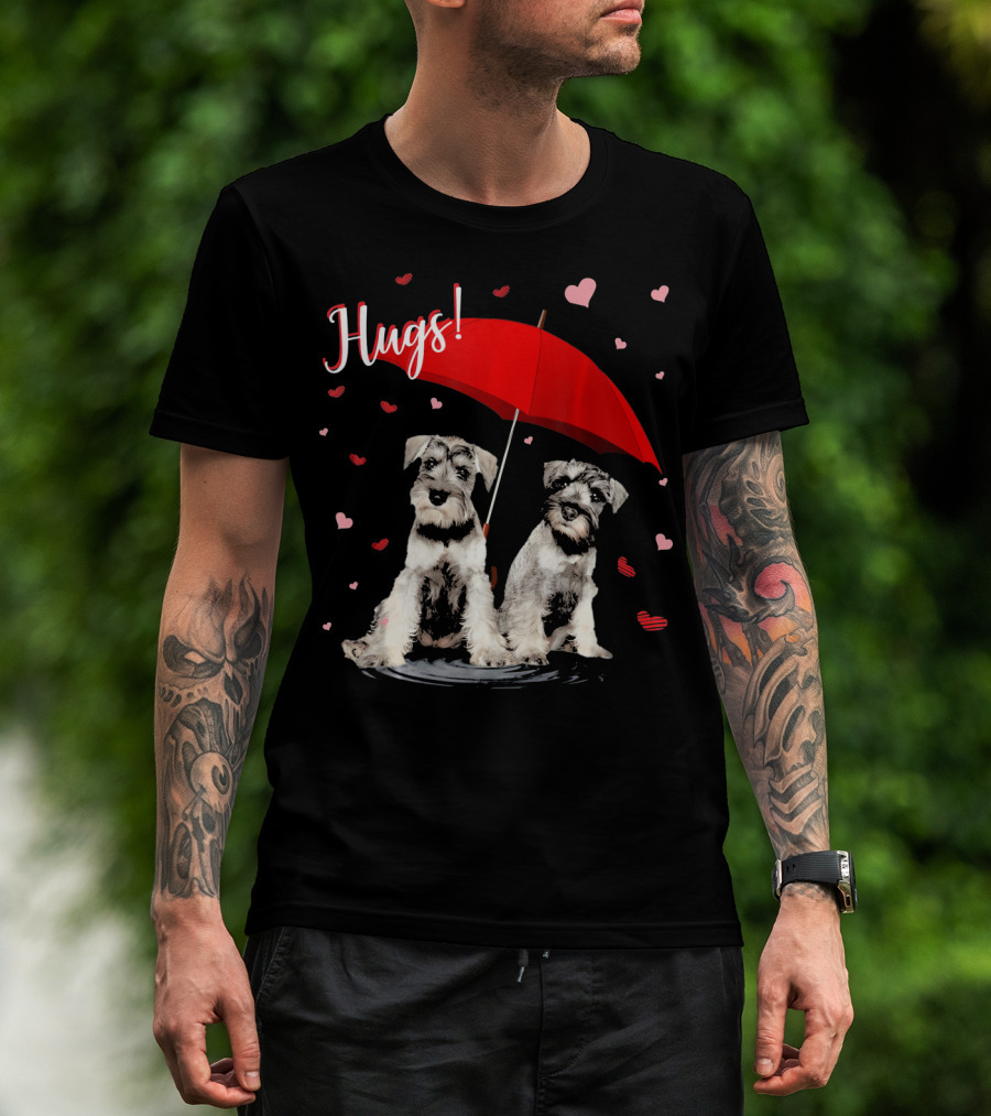 Hugs Schnauzers Under Red Umbrella With Hearts T-Shirt