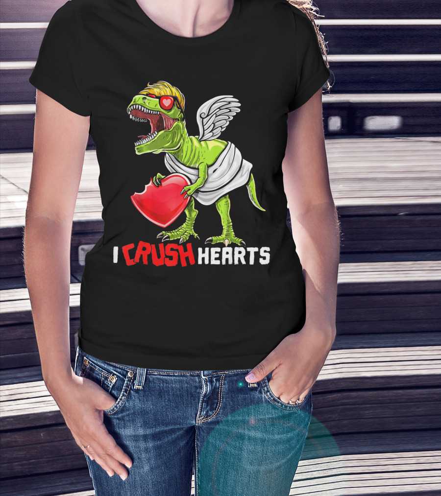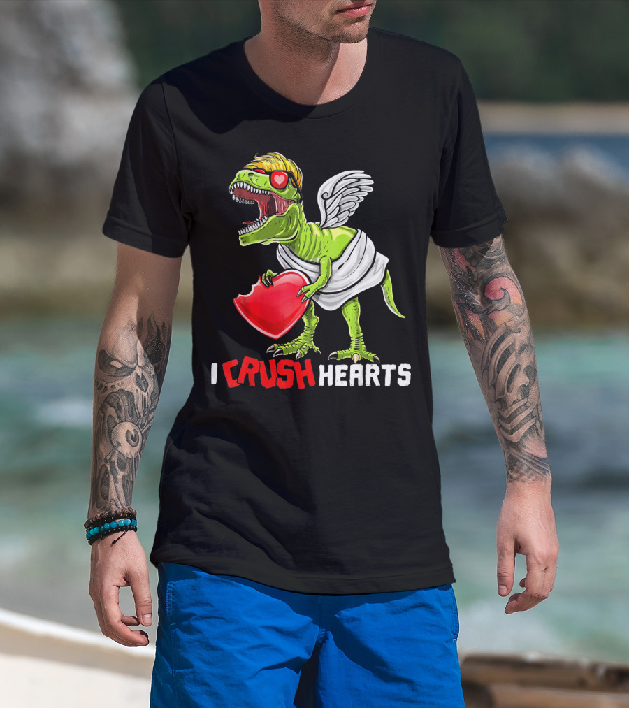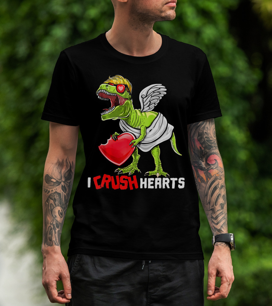 I Crush Hearts Valentine Day T-Rex With Wings And Heart T-Shirt