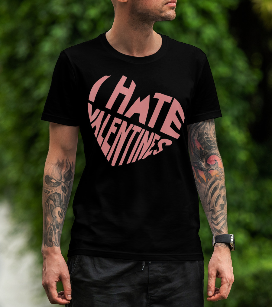 The I Hate Valentines Day Pink Heart T-shirt is designed for everyday wear and a consistent fit. Fabric is pre-shrunk ring-spun cotton with durable stitching. See the size chart below for exact measurements.