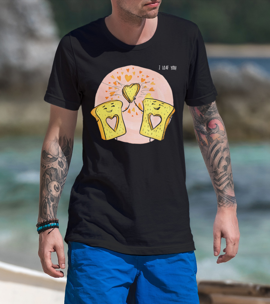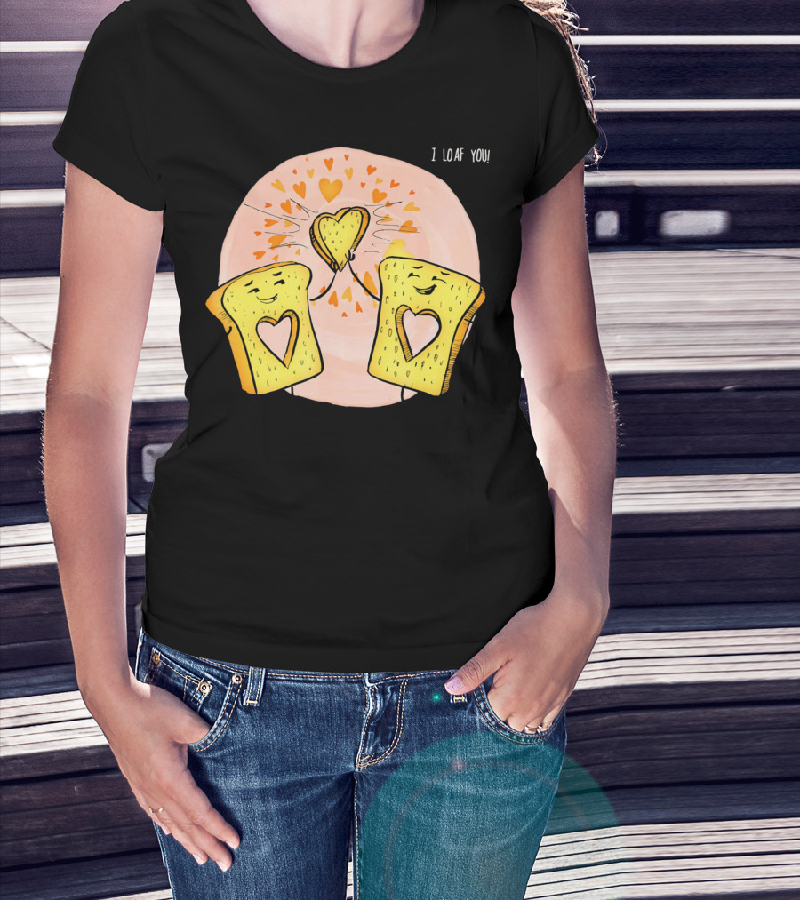 I Loaf You Heart Love Cute Funny Valentine Bread Slices T-Shirt