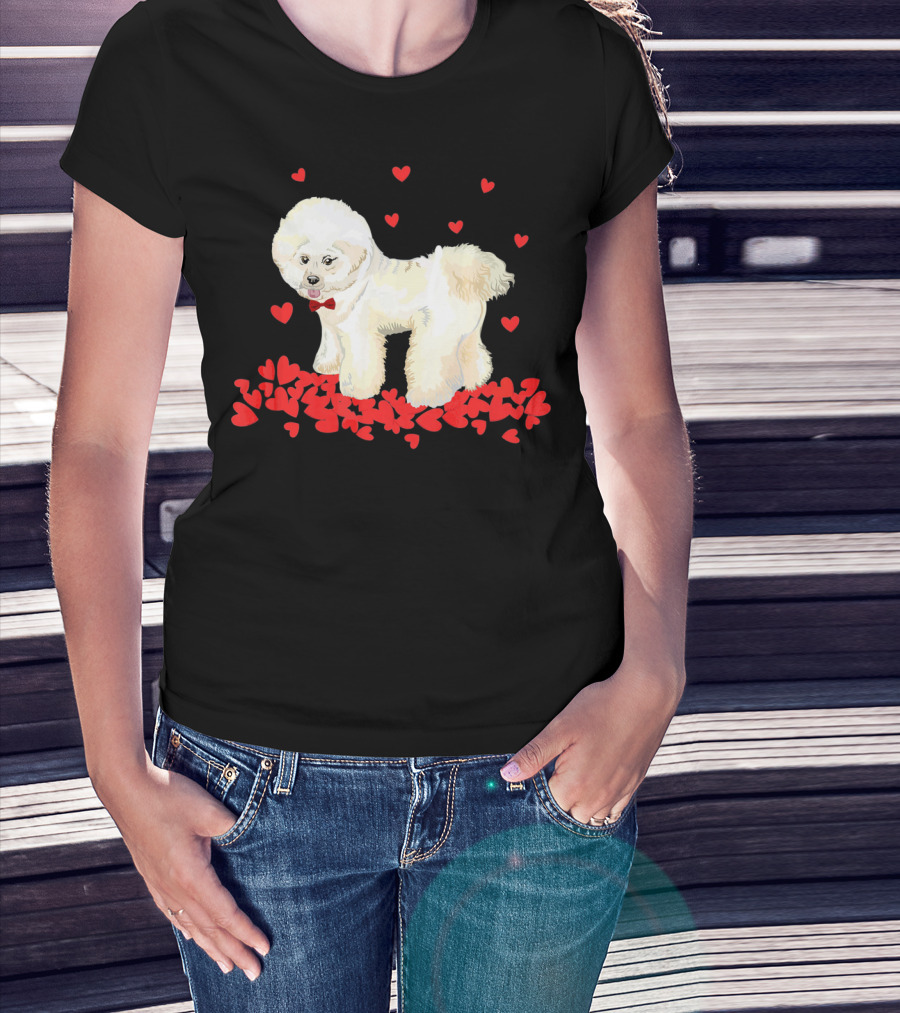 I Love My Bichon Frise Surrounded By Red Hearts Valentine's Day T-Shirt