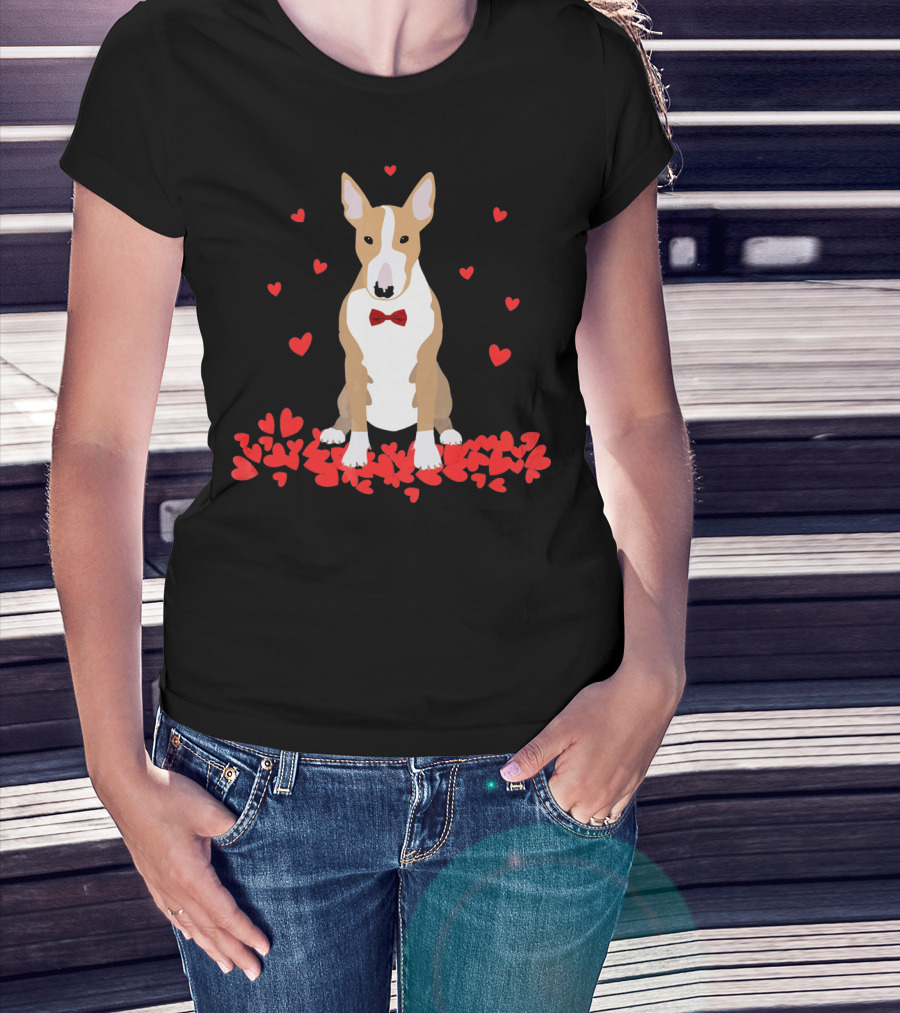 The I Love My Bull Terrier Valentine Surrounded by Hearts and Red Bow Tie T-shirt is designed for everyday wear and a consistent fit. Fabric is pre-shrunk ring-spun cotton with durable stitching. See the size chart below for exact measurements.