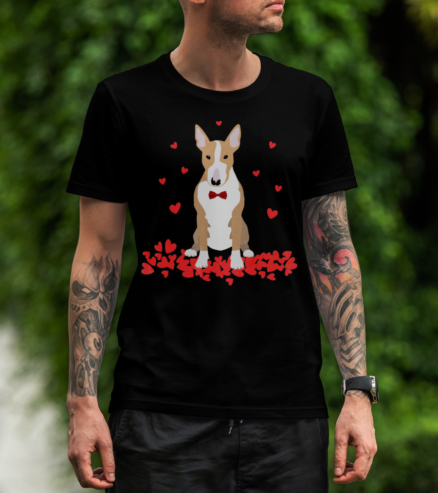 I Love My Bull Terrier Valentine Surrounded By Hearts And Red Bow Tie T-Shirt