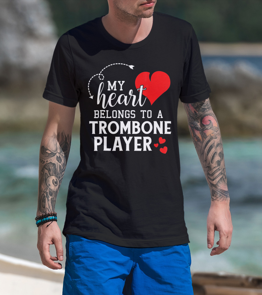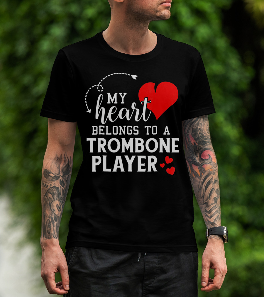 The My Heart Belongs to a Trombone Player T-shirt is designed for everyday wear and a consistent fit. Fabric is pre-shrunk ring-spun cotton with durable stitching. See the size chart below for exact measurements.