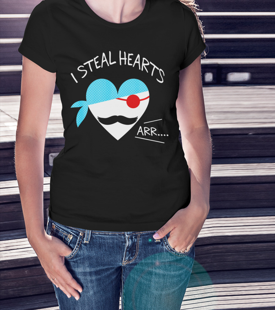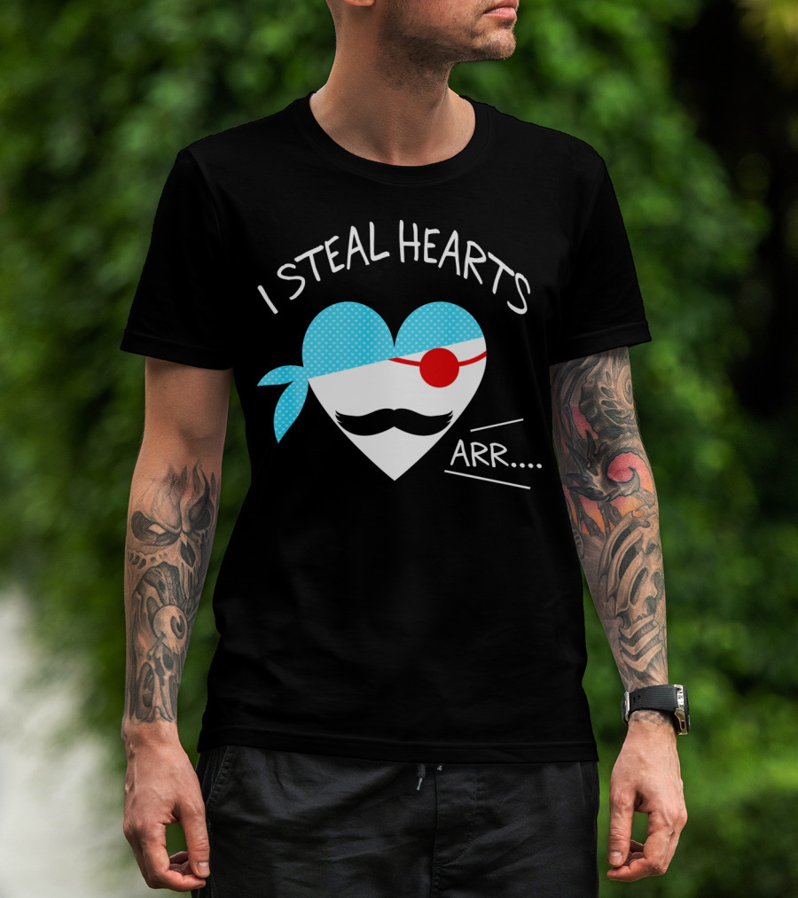 I Steal Hearts Mustache Pirate Heart Arr T-Shirt