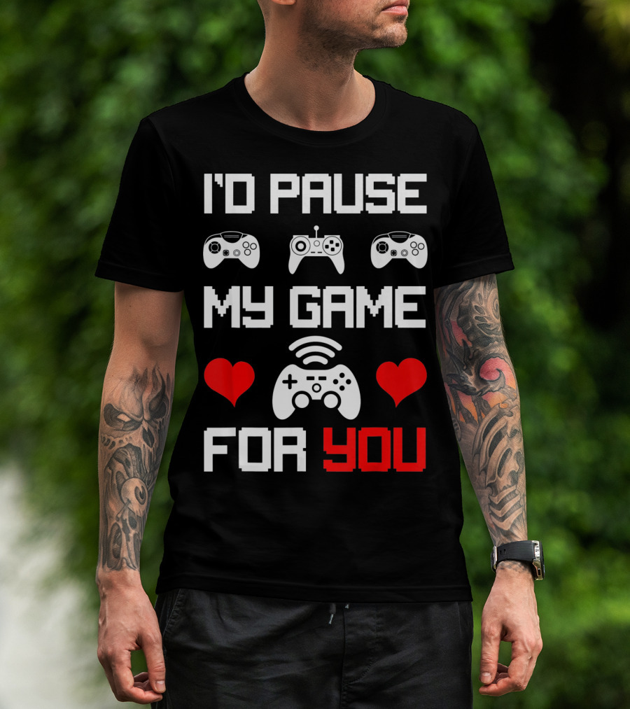 I'd Pause My Game For You Gamer Valentine's Heart Controllers T-Shirt