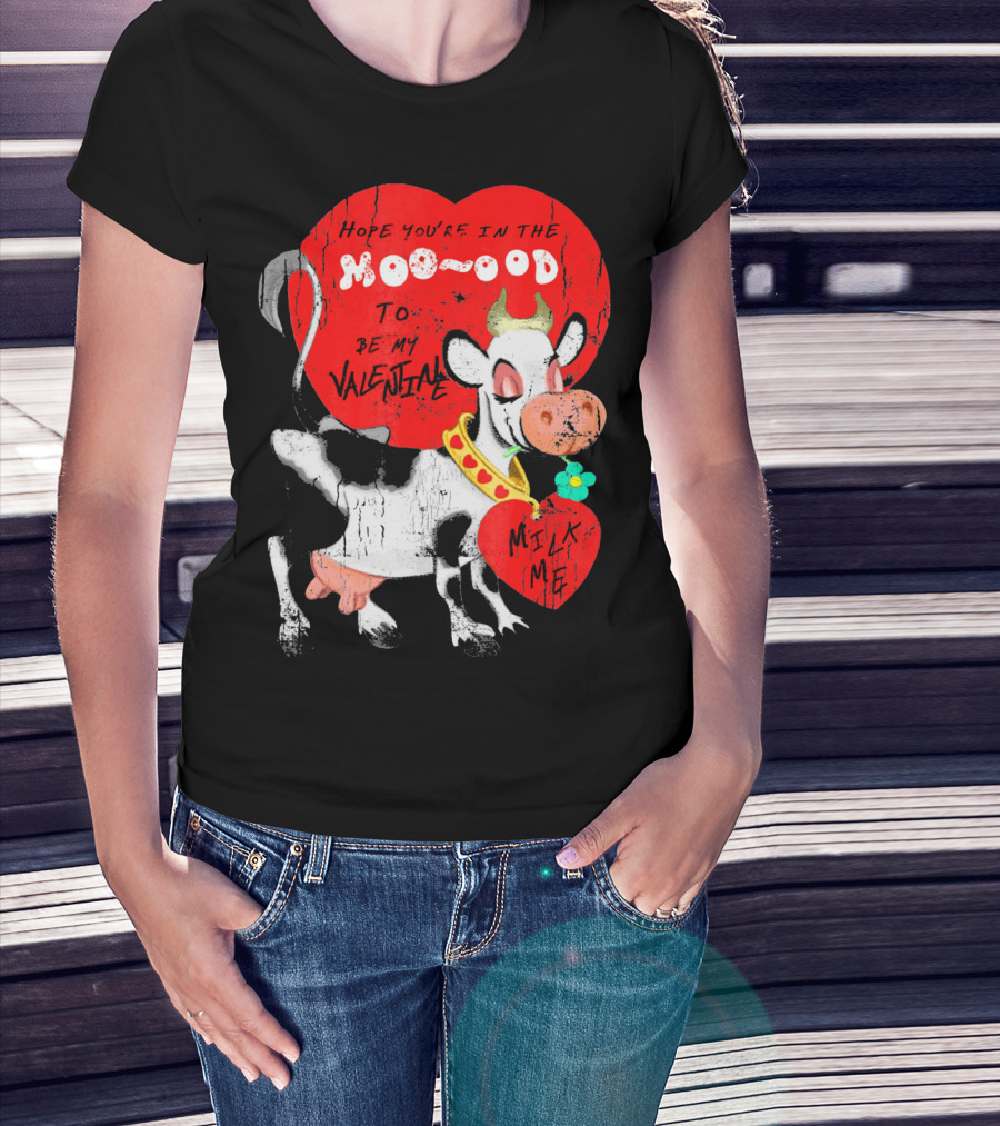 Hope You're In The Moo-ood To Be My Valentine Milk Me Vintage Cow T-Shirt