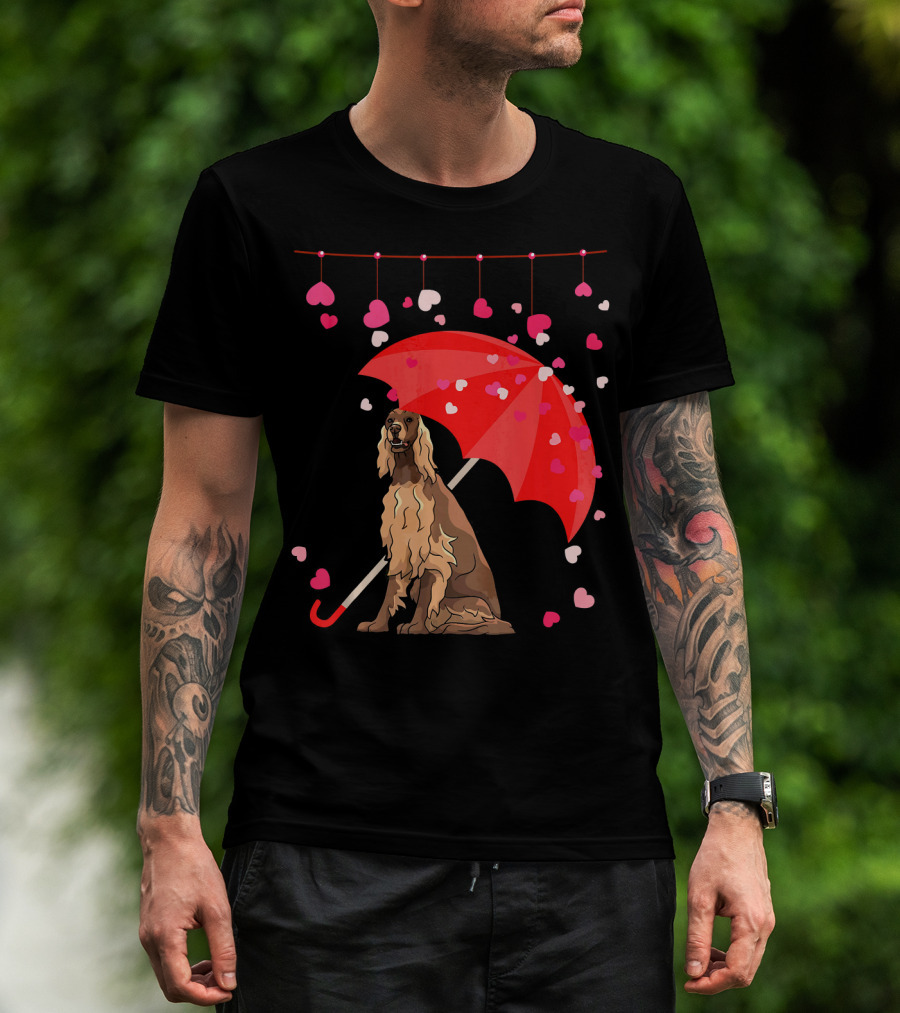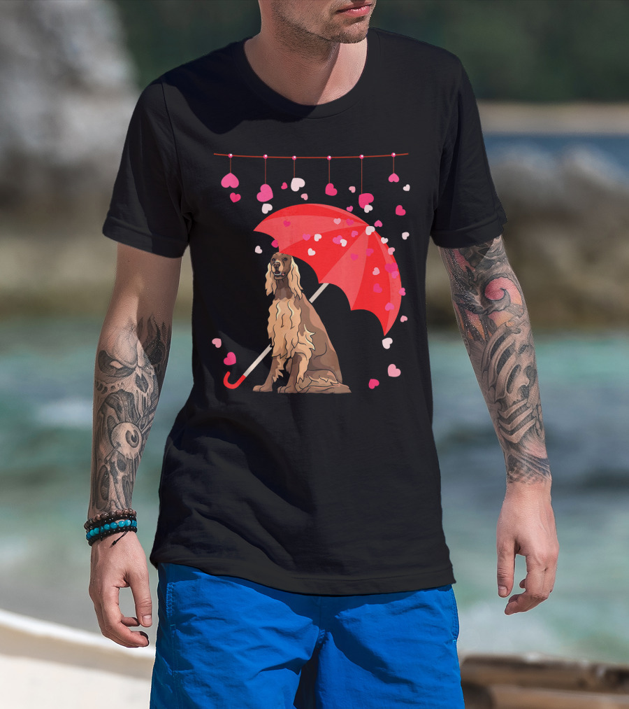 Irish Setter With Red Umbrella And Falling Hearts Valentine T-Shirt