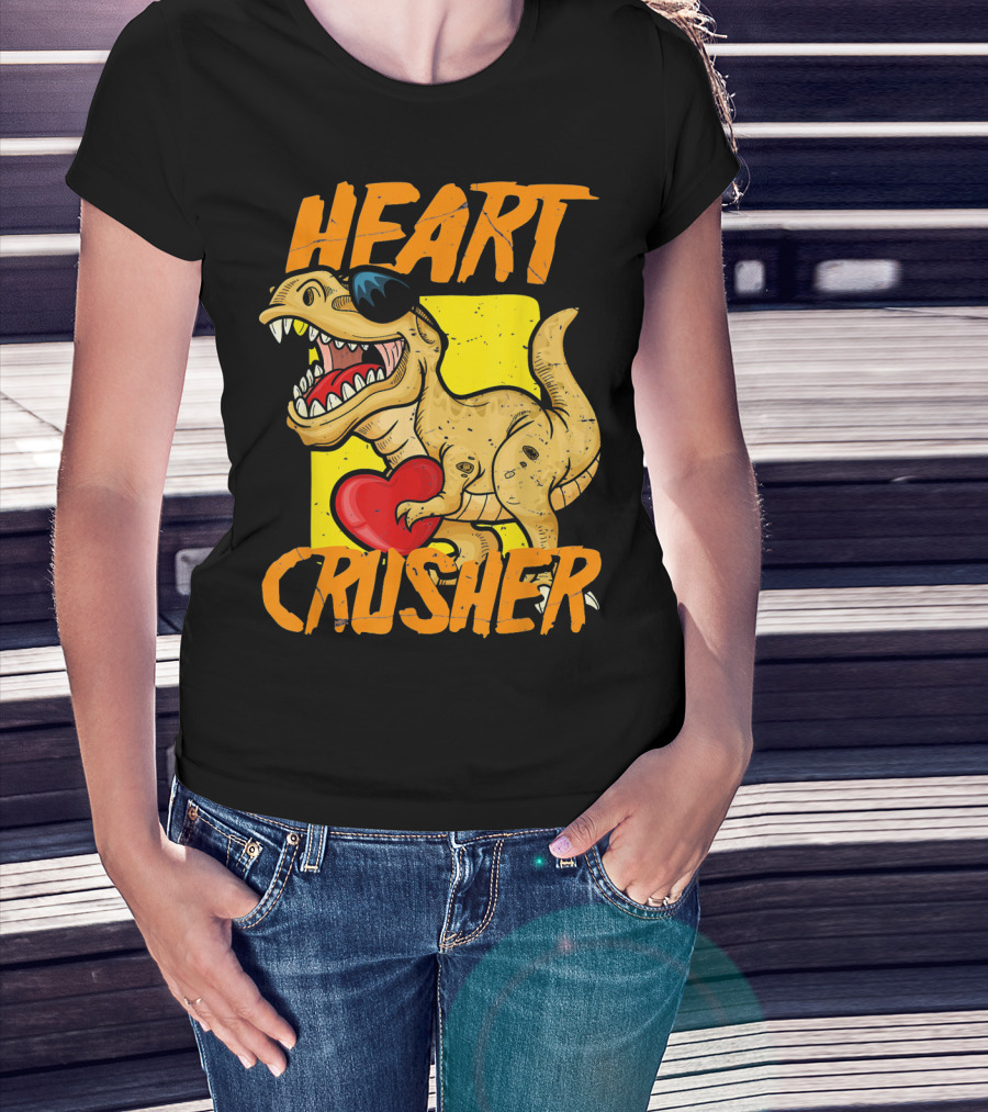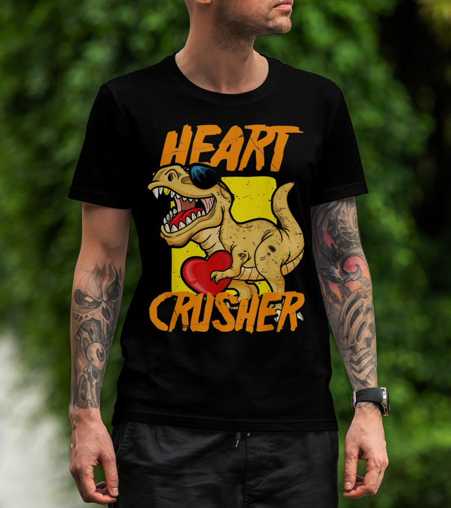The HEART CRUSHER Kids Dinosaur T-shirt is designed for everyday wear and a consistent fit. Fabric is pre-shrunk ring-spun cotton with durable stitching. See the size chart below for exact measurements.
