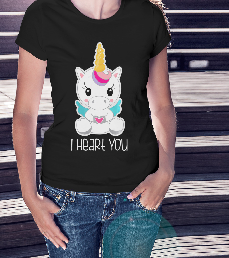 Kids Cute I Heart You Unicorn Hugging Adorable Kawaii T-Shirt