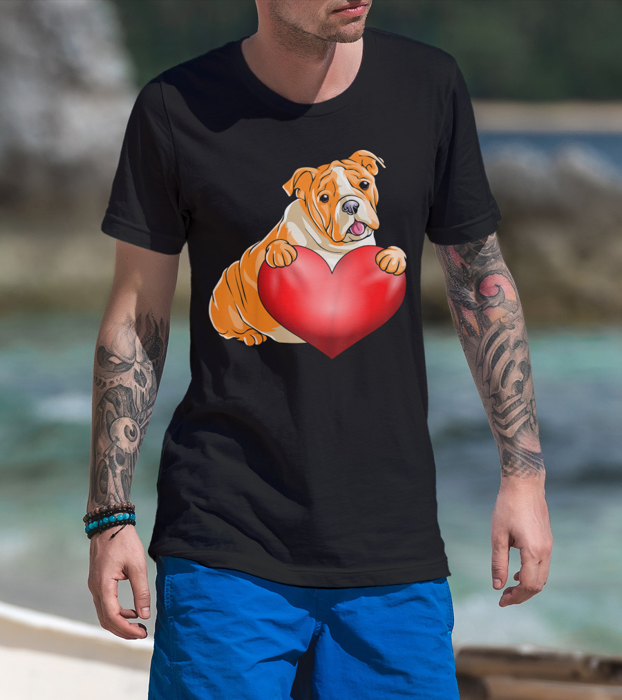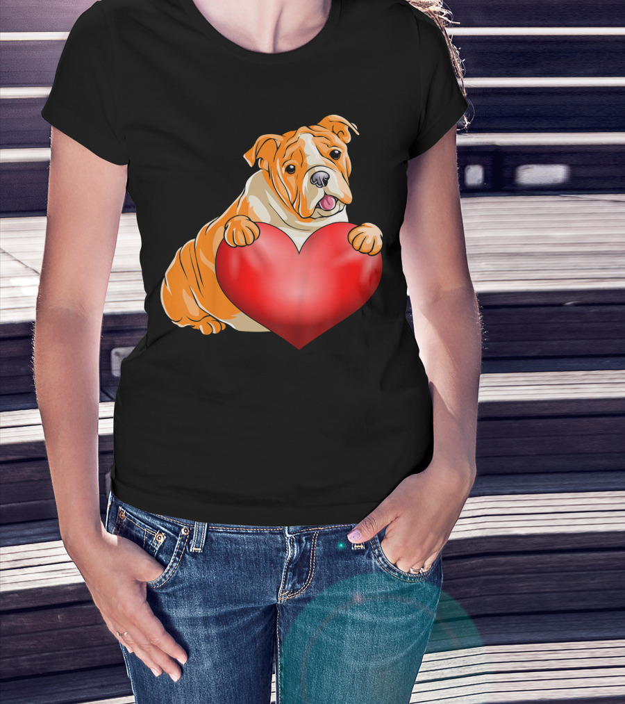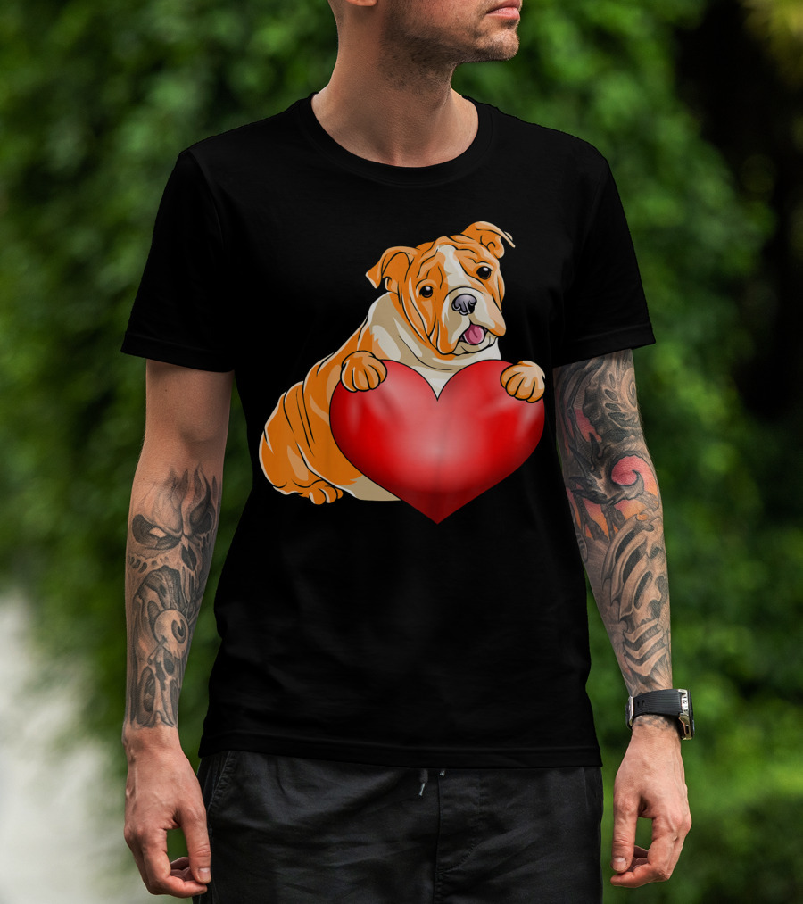 Kids Valentines Day Bulldog Heart Dog T-Shirt