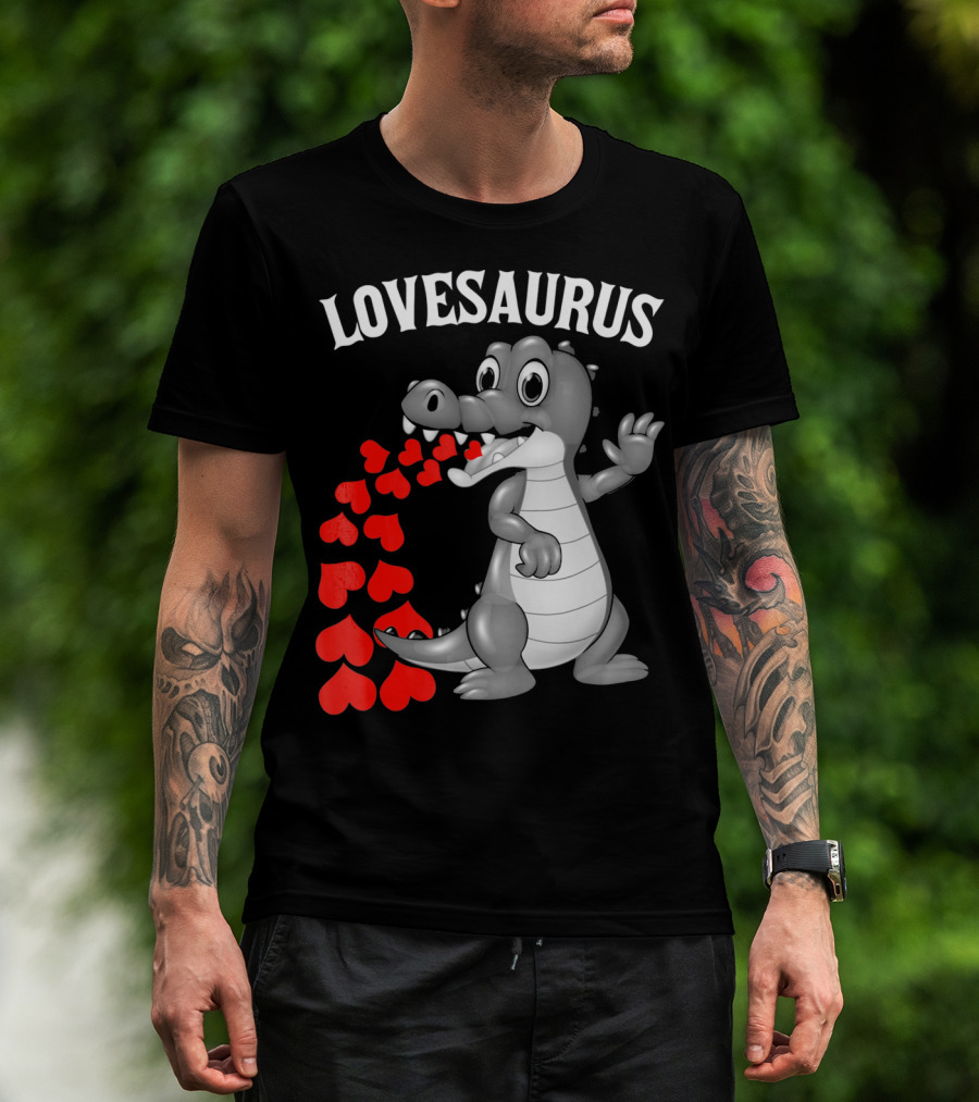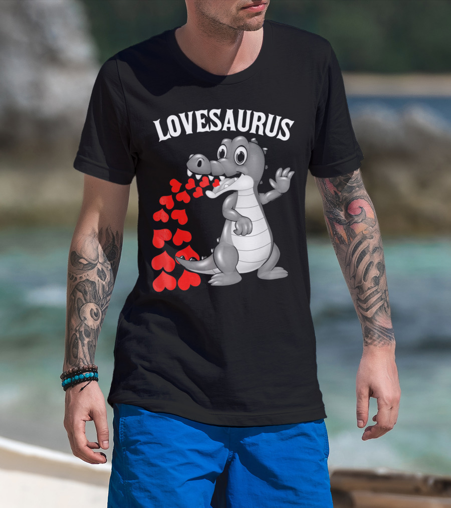 LOVESAURUS Kids Valentines Day Dinosaur Hearts T-Shirt