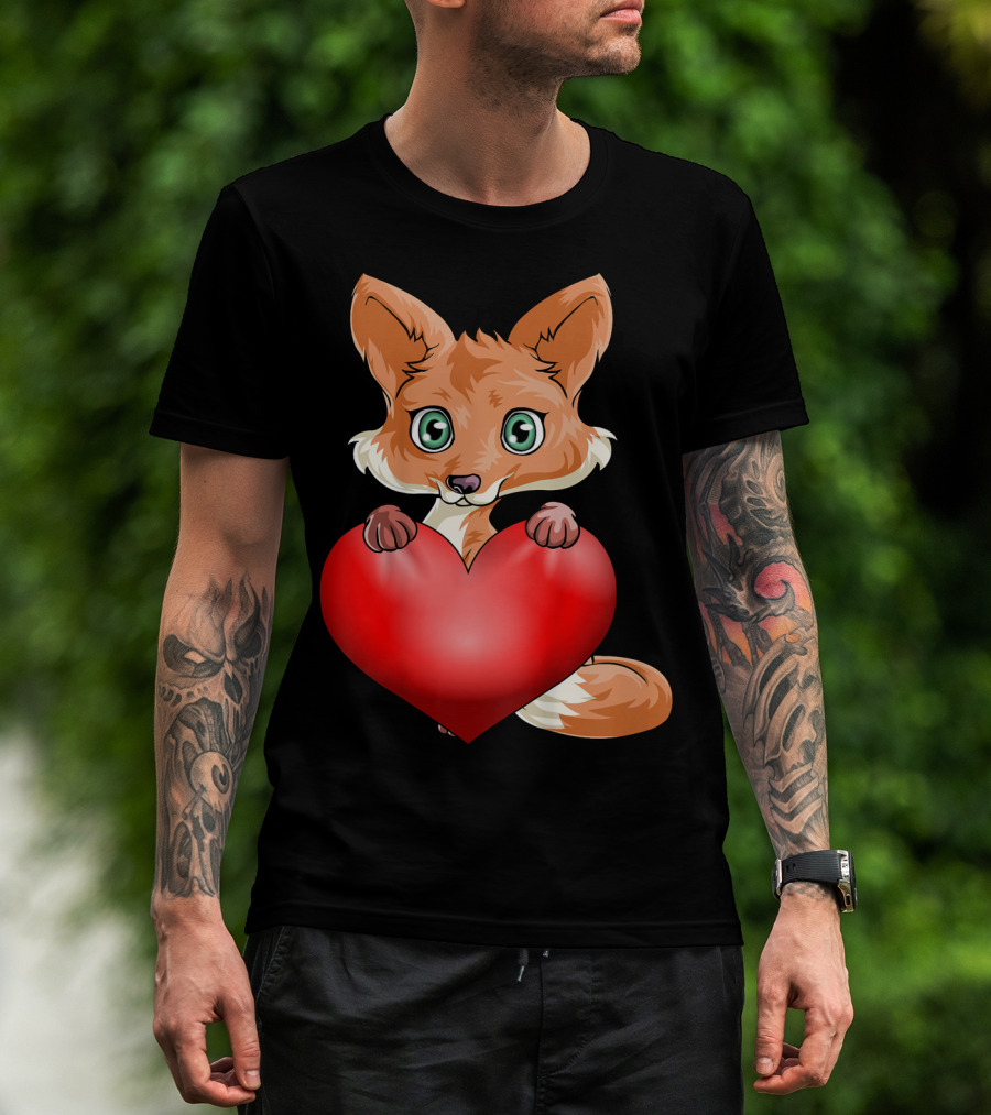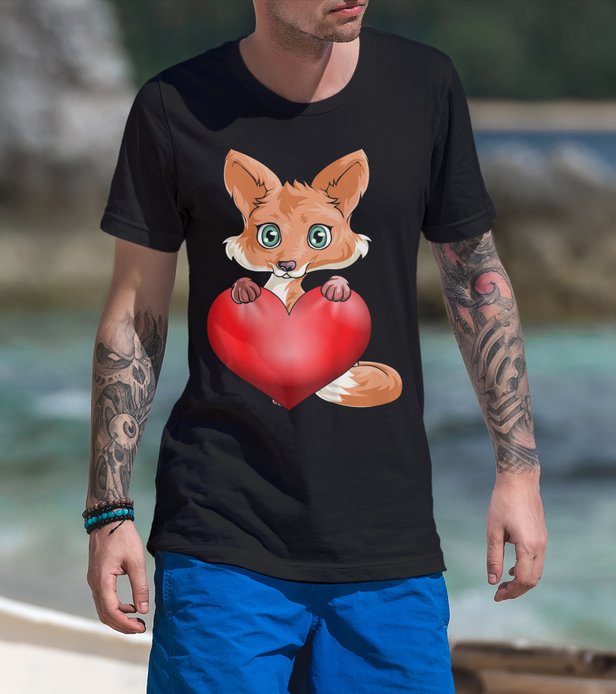 Cute Valentine's Day Fox Holding Heart T-Shirt