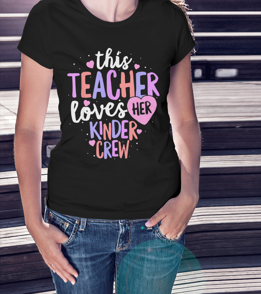 This Teacher Loves Her Kinder Crew Valentine Hearts T-Shirt