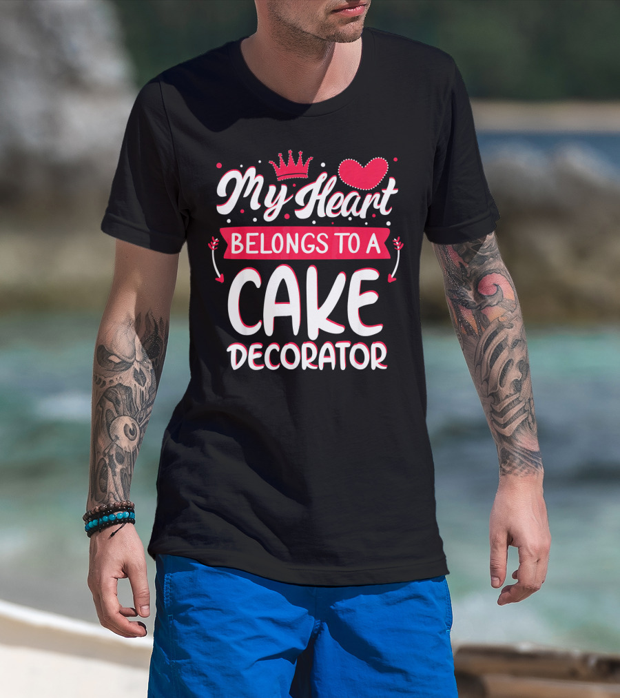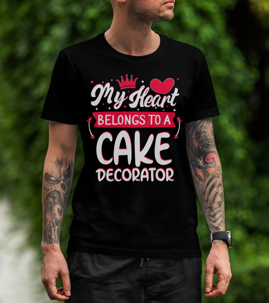 The My Heart Belongs to a Cake Decorator T-shirt is designed for everyday wear and a consistent fit. Fabric is pre-shrunk ring-spun cotton with durable stitching. See the size chart below for exact measurements.