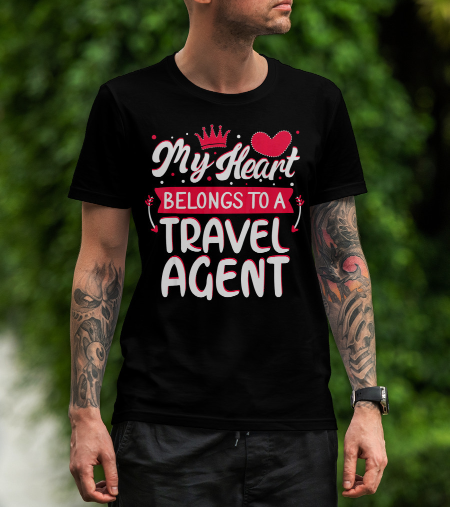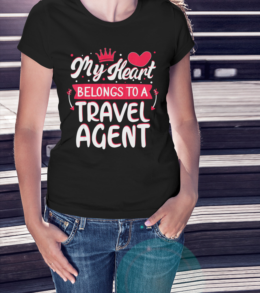 The My Heart Belongs to a Travel Agent T-shirt is designed for everyday wear and a consistent fit. Fabric is pre-shrunk ring-spun cotton with durable stitching. See the size chart below for exact measurements.
