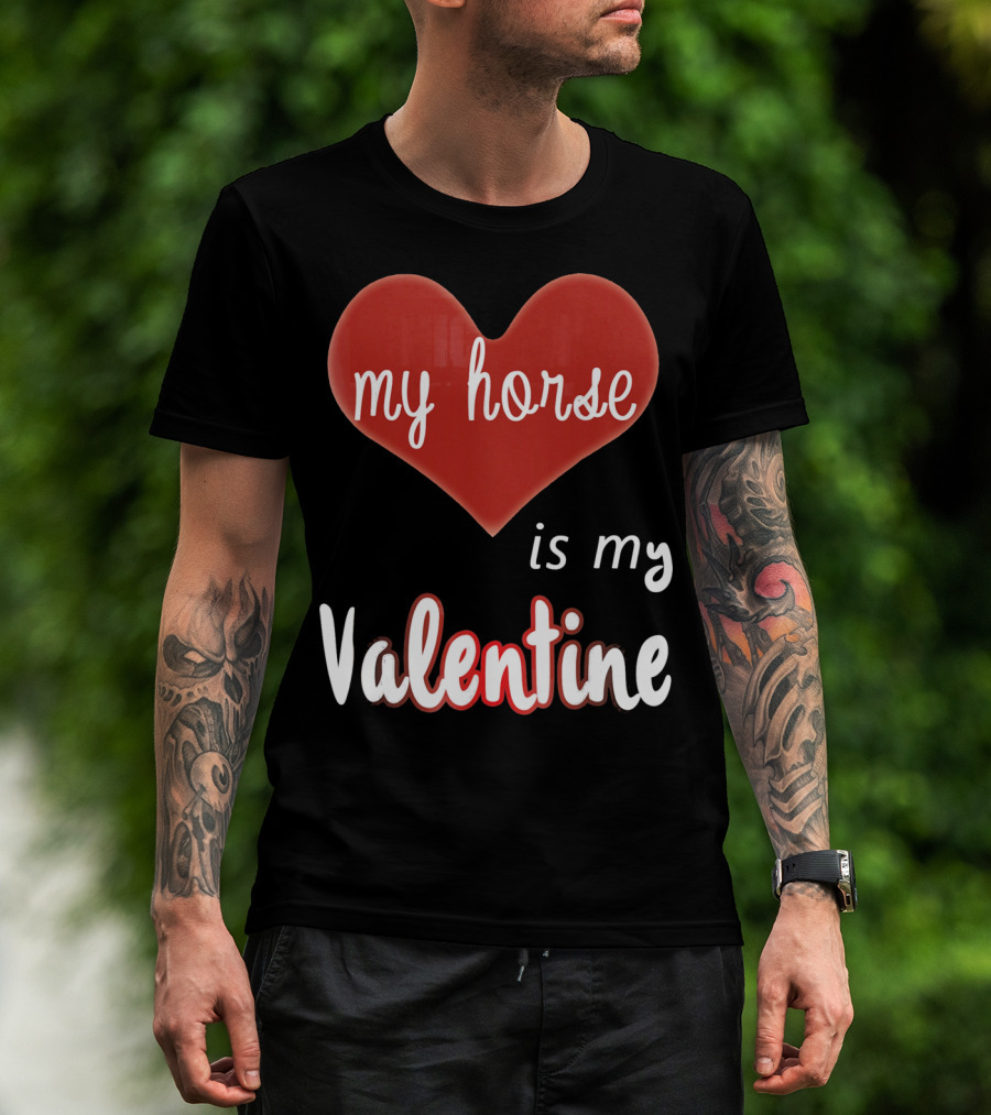 The my horse in heart is my valentine T-shirt is designed for everyday wear and a consistent fit. Fabric is pre-shrunk ring-spun cotton with durable stitching. See the size chart below for exact measurements.
