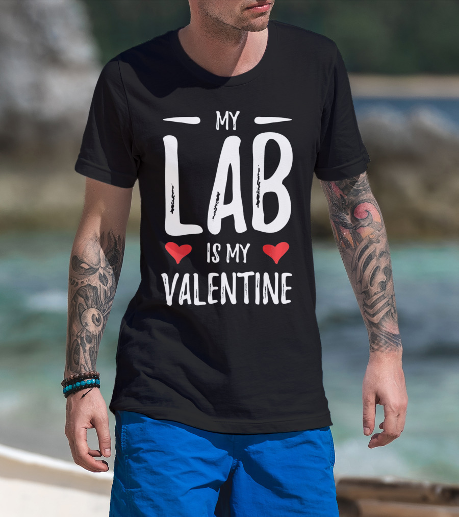 The My Lab Is My Valentine Hearts T-shirt is designed for everyday wear and a consistent fit. Fabric is pre-shrunk ring-spun cotton with durable stitching. See the size chart below for exact measurements.