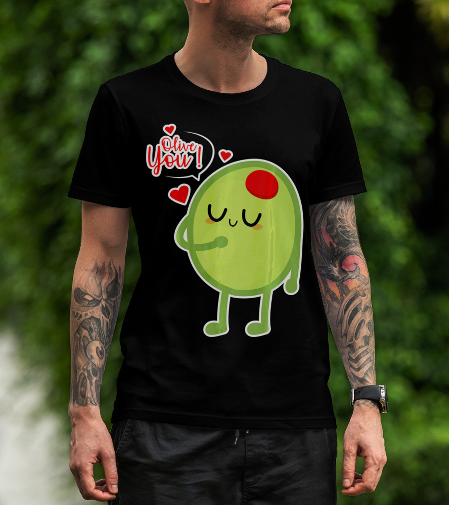 The Olive You Cute Valentines Day Love T-shirt is designed for everyday wear and a consistent fit. Fabric is pre-shrunk ring-spun cotton with durable stitching. See the size chart below for exact measurements.