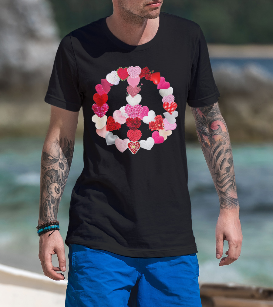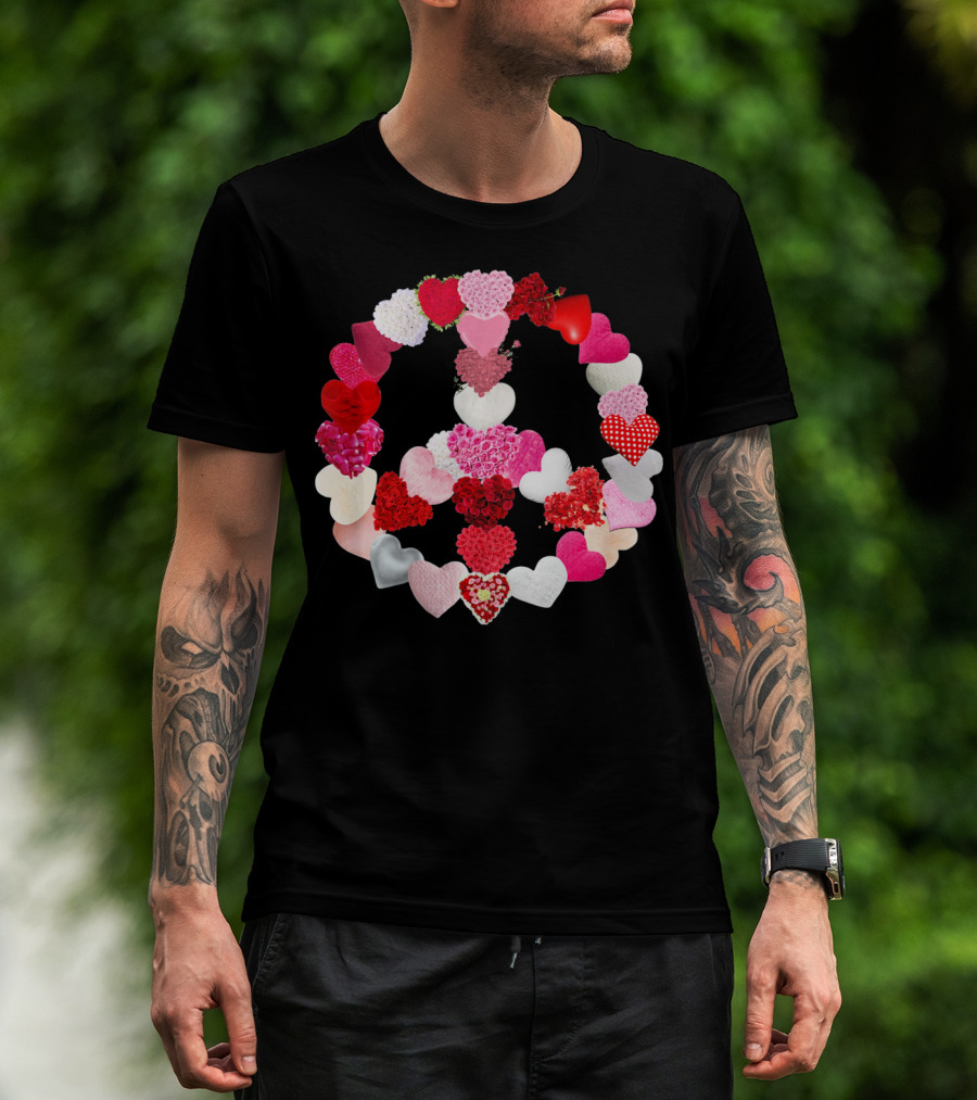 The Valentine Heart Peace Sign T-shirt is designed for everyday wear and a consistent fit. Fabric is pre-shrunk ring-spun cotton with durable stitching. See the size chart below for exact measurements.