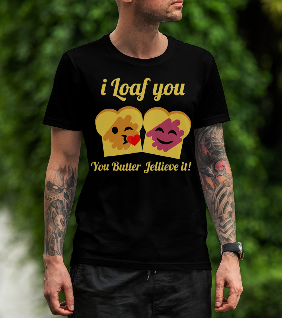 I Loaf You You Butter Jellieve It Peanut Butter And Jelly Pun T-Shirt