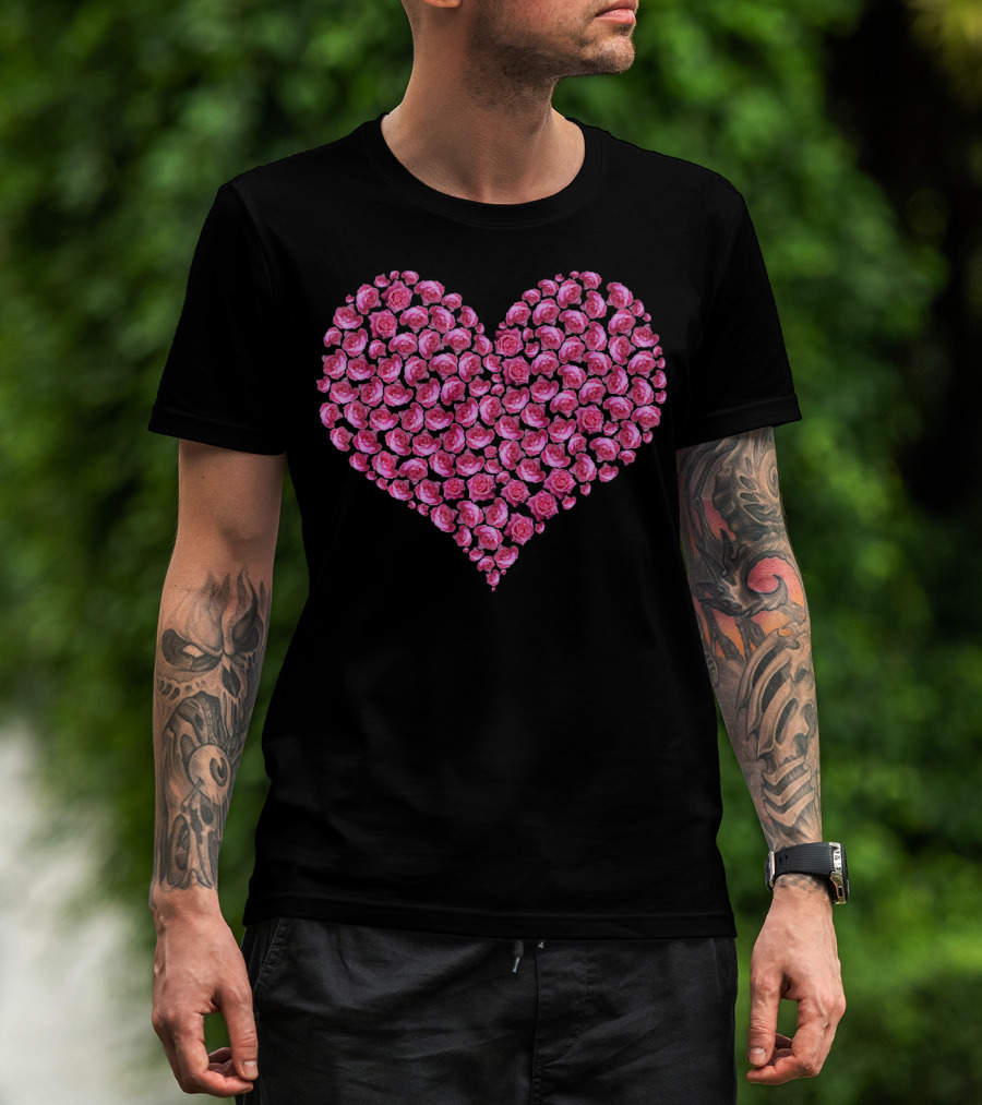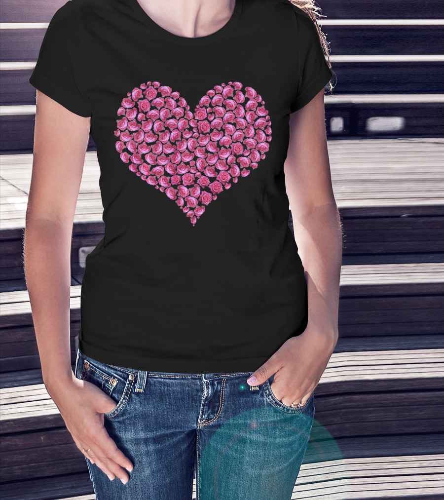 Pink Rose Flower Heart For Roses Lover T-Shirt
