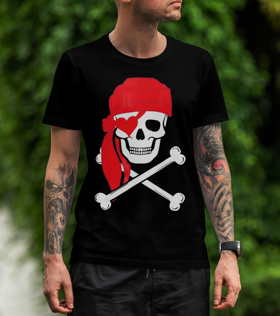 Pirate Skull And Cross Bones Heart Eyepatch Valentines T-Shirt
