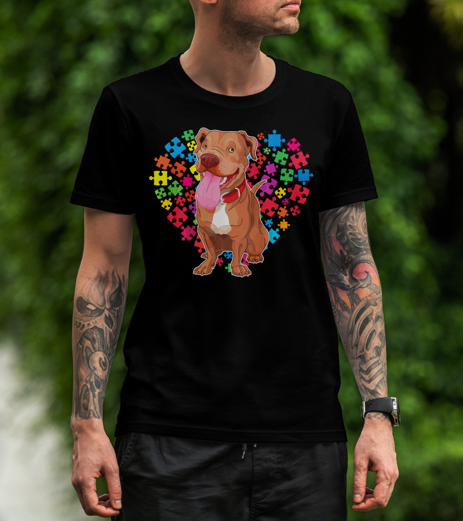 Pitbull Dog Heart Puzzle Valentine T-Shirt