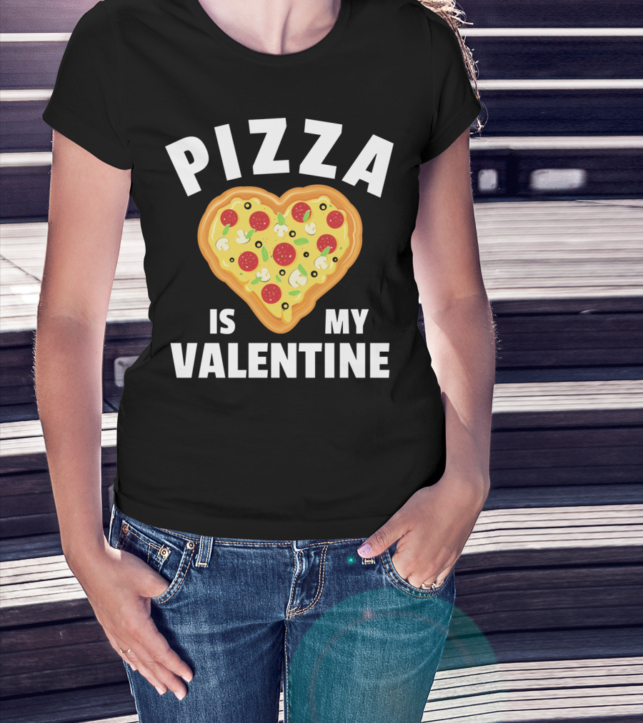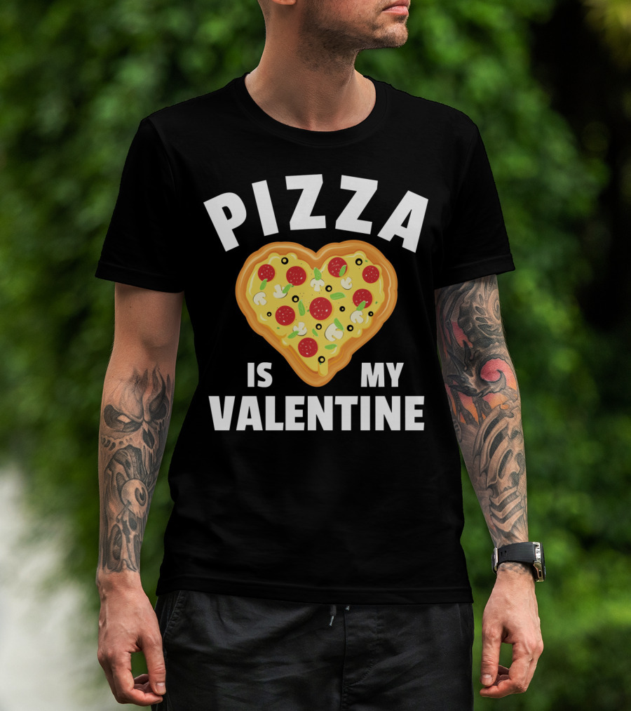 Pizza Is My Valentine Funny Food Lovers Heart Shaped Pizza T-Shirt