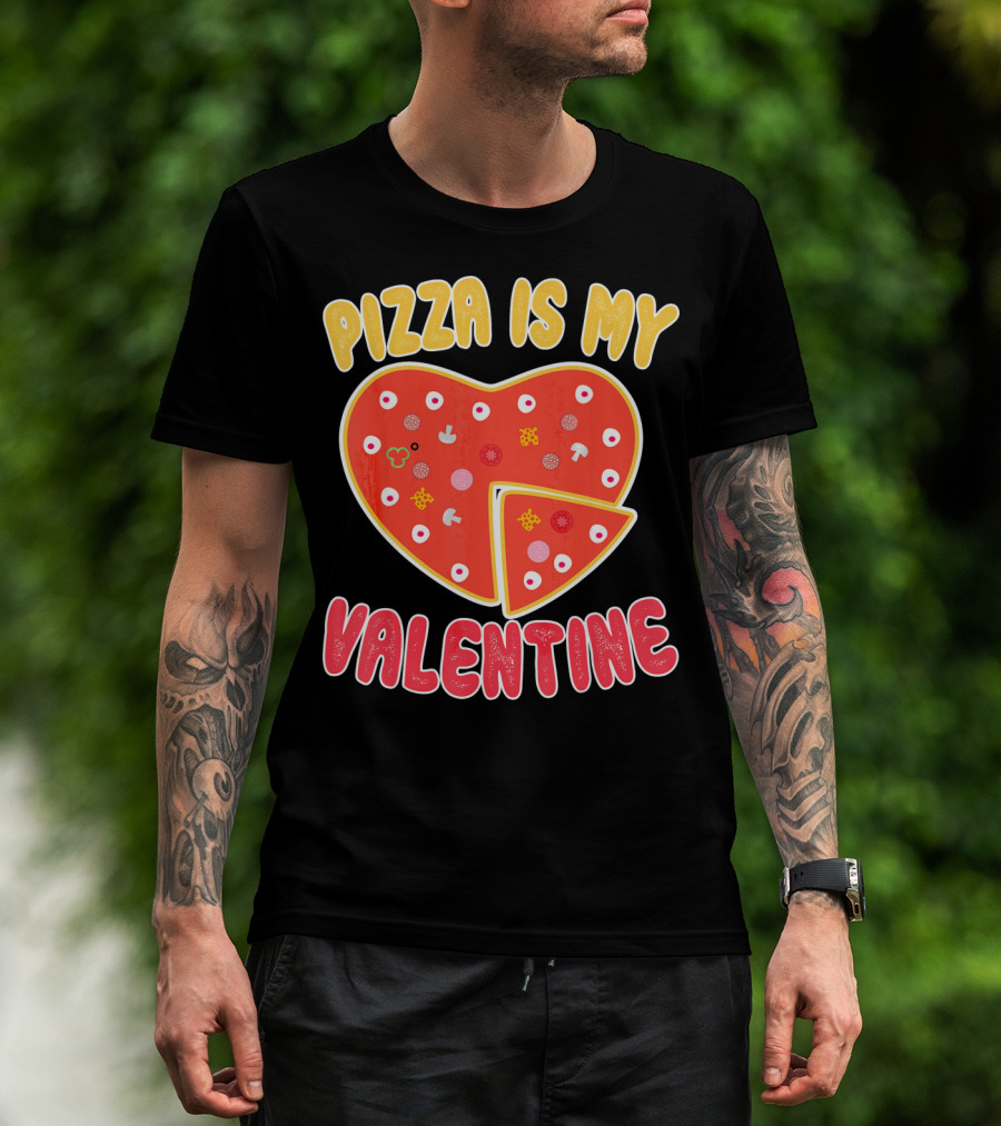 Pizza Is My Valentine Heart-Shaped Fun Valentine T-Shirt