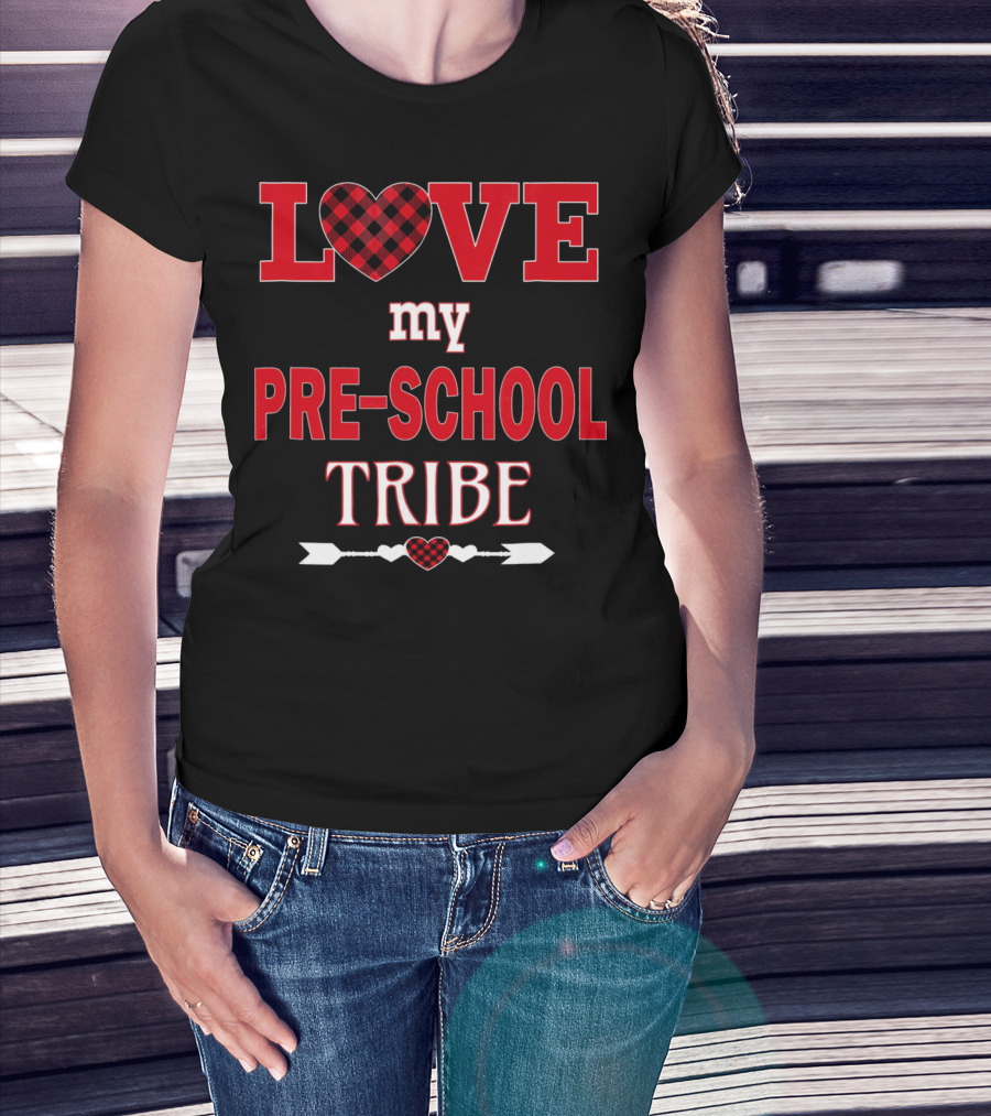 LOVE My Preschool Tribe Buffalo Plaid Heart Arrow T-Shirt