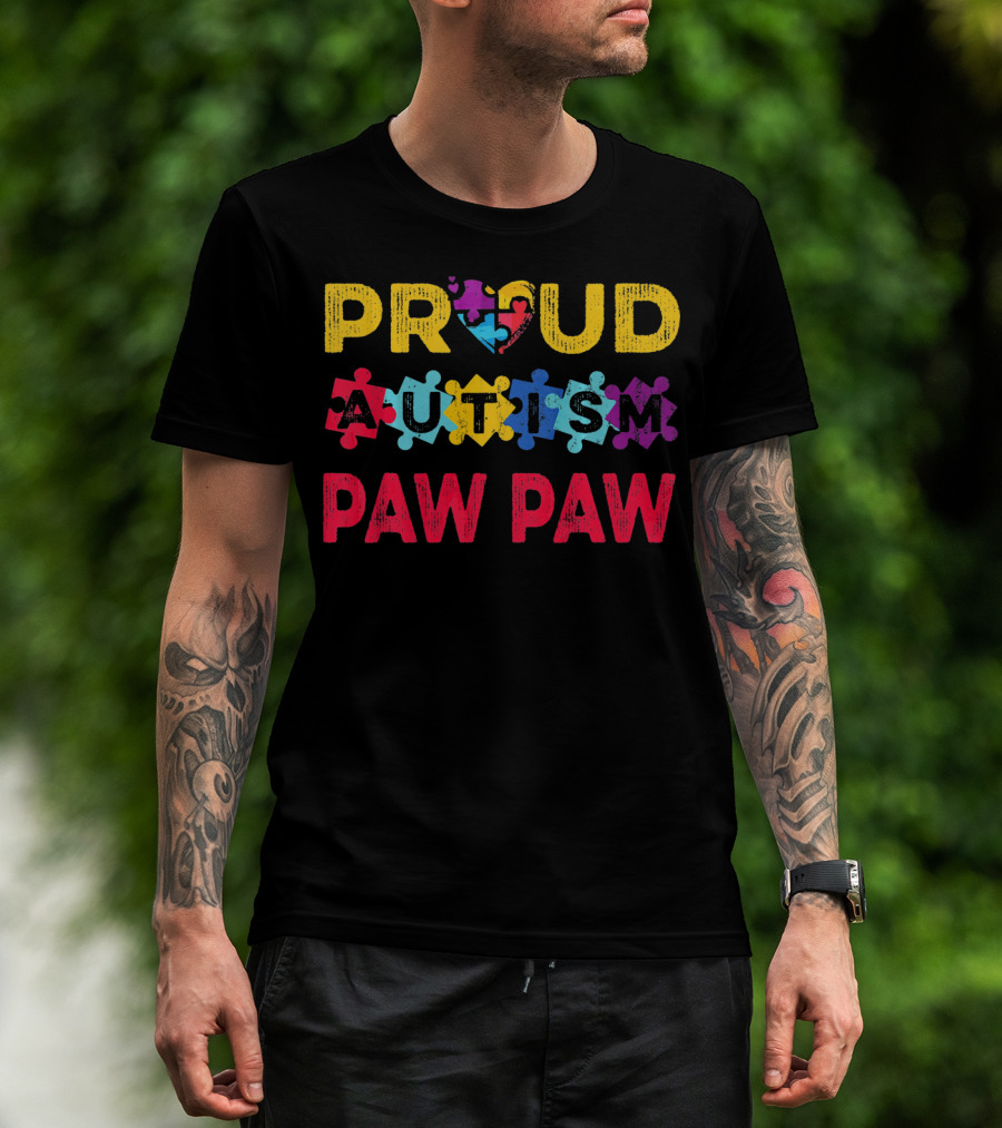 Proud Autism Paw Paw Valentine's Heart Puzzle T-Shirt