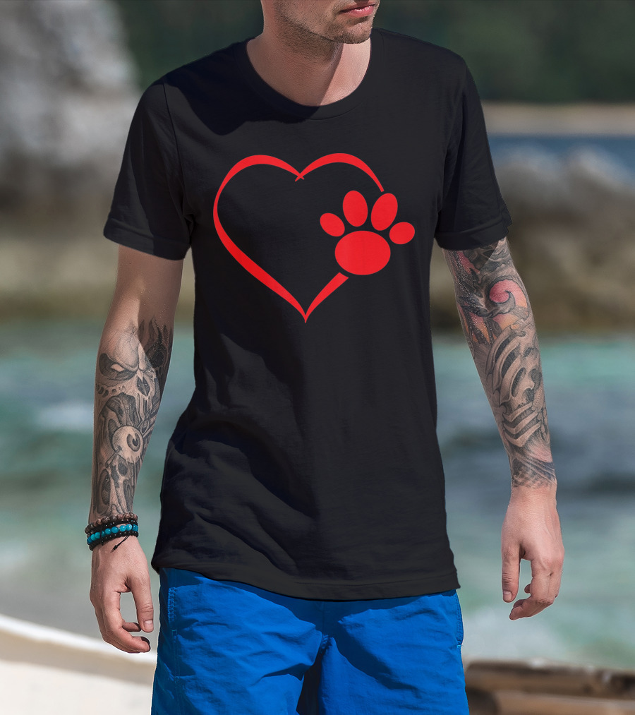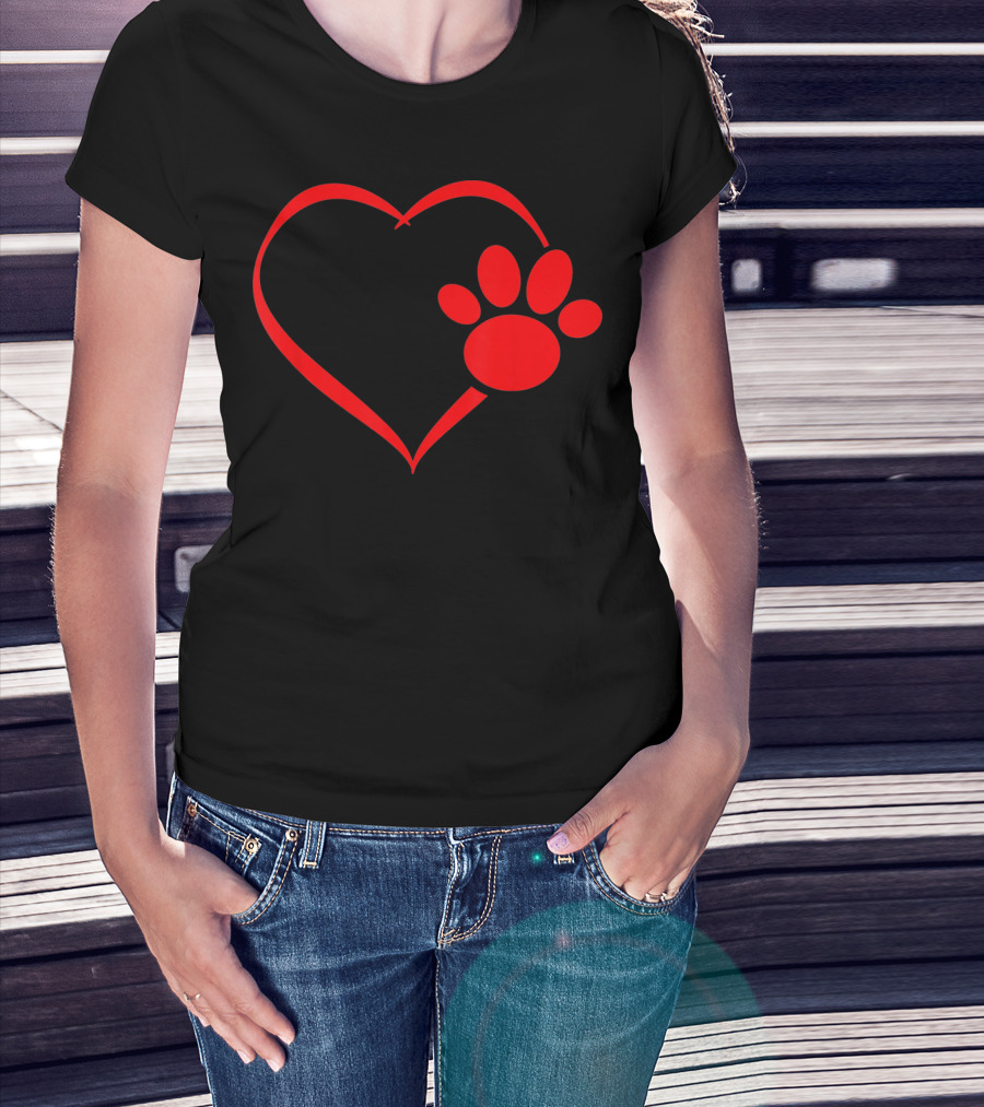 Red Heart Dog And Cat Paw Print Heart Va Love Pet Pawprint T-Shirt