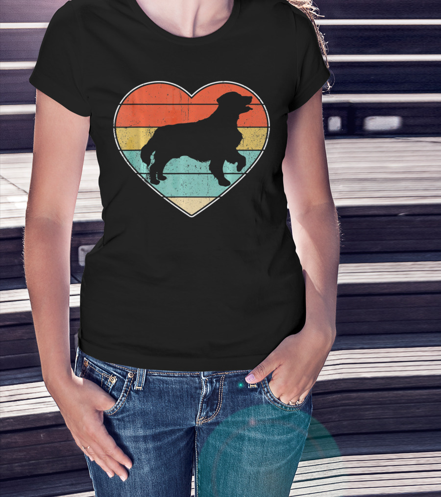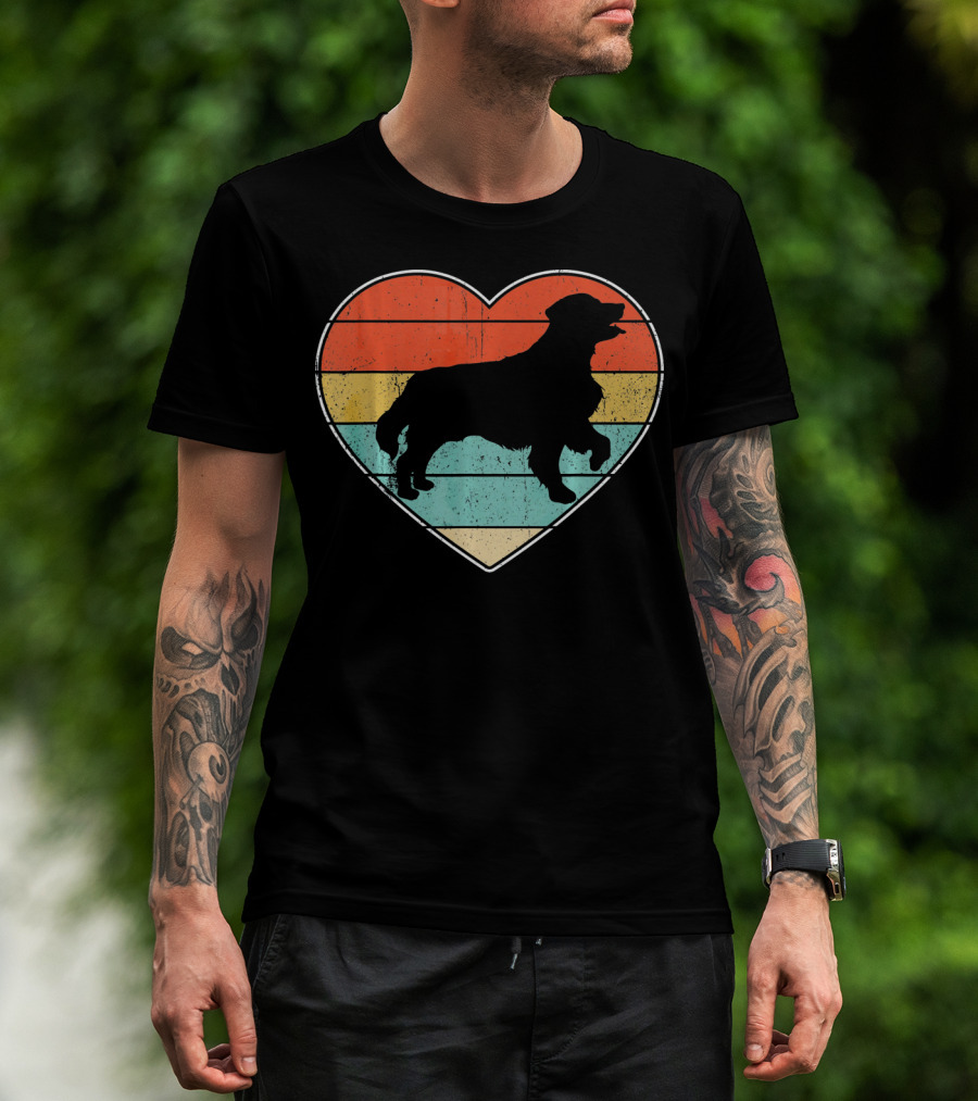 Retro Vintage Golden Retriever Silhouette Heart T-Shirt