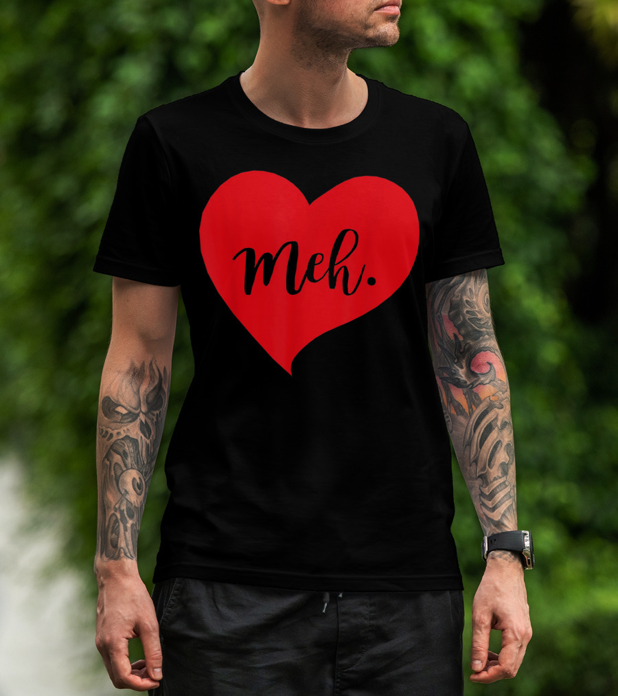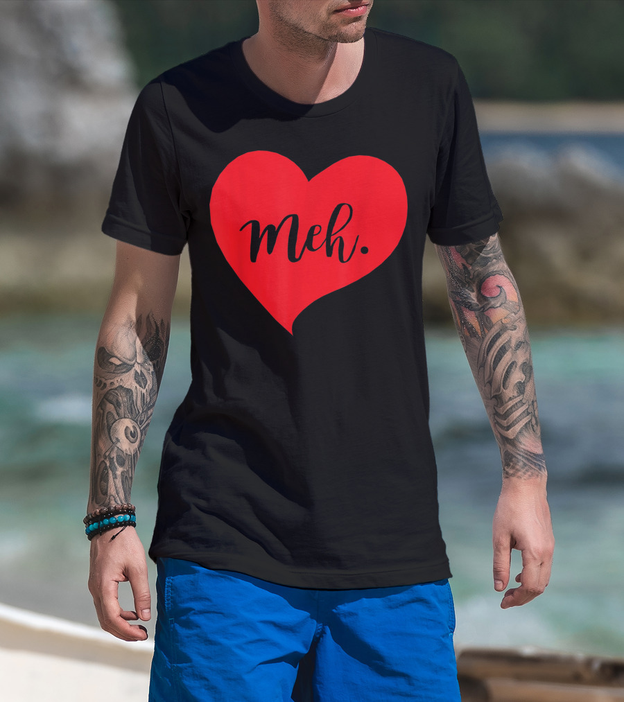 Meh Heart Sarcastic Valentines Day T-Shirt