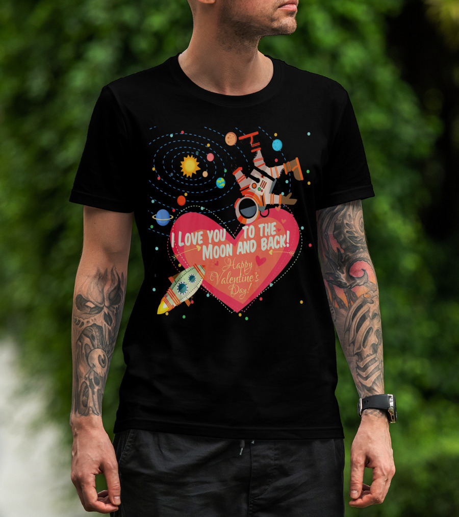 I Love You To The Moon And Back Happy Valentine's Day Astronaut And Planets T-Shirt