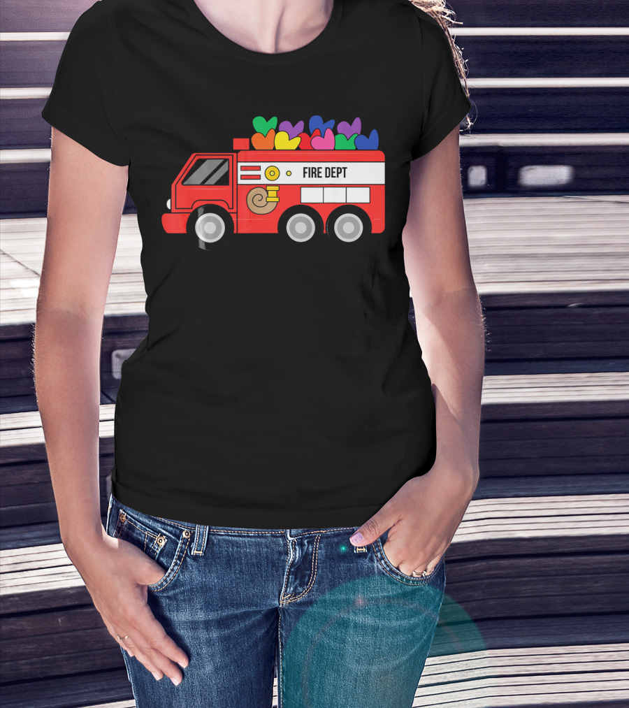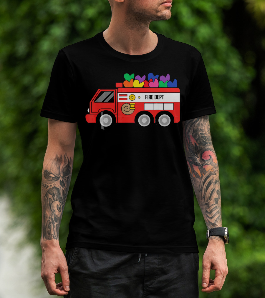 Fire Dept Valentine Hearts Sloth Fire Truck T-Shirt