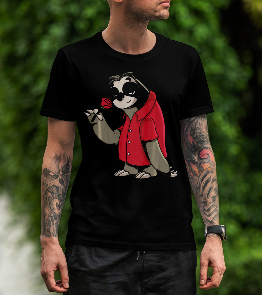 Romantic Sloth Valentine With Red Rose T-Shirt