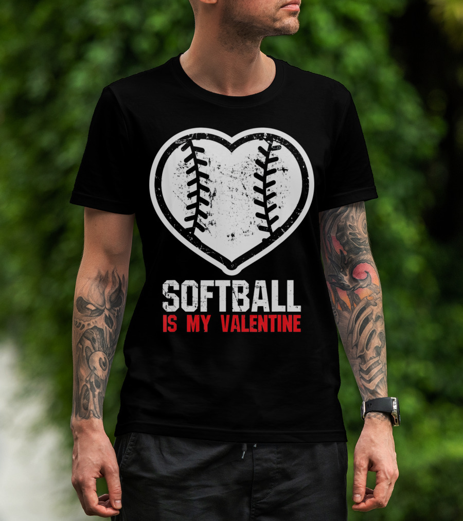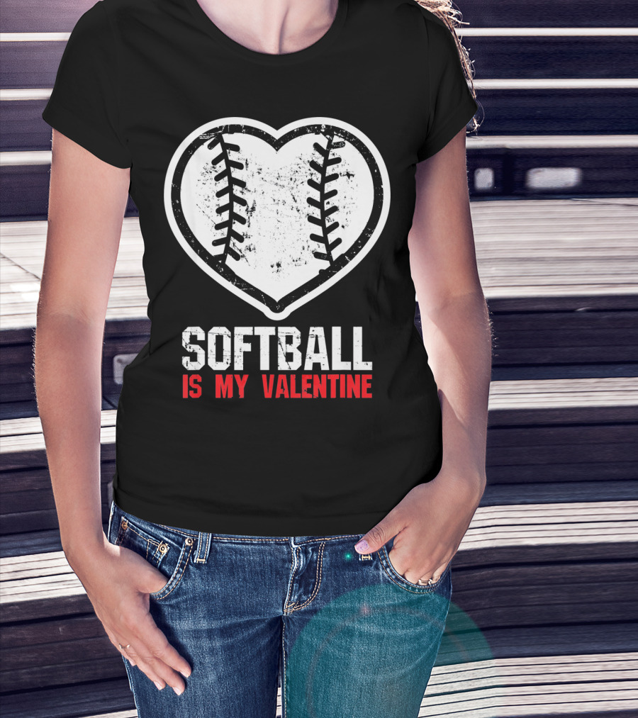 Softball Is My Valentine Heartball Stitching T-Shirt
