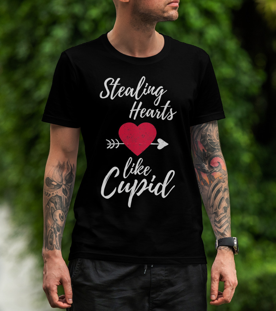 Stealing Hearts Like Cupid Valentines Red Heart Arrow T-Shirt