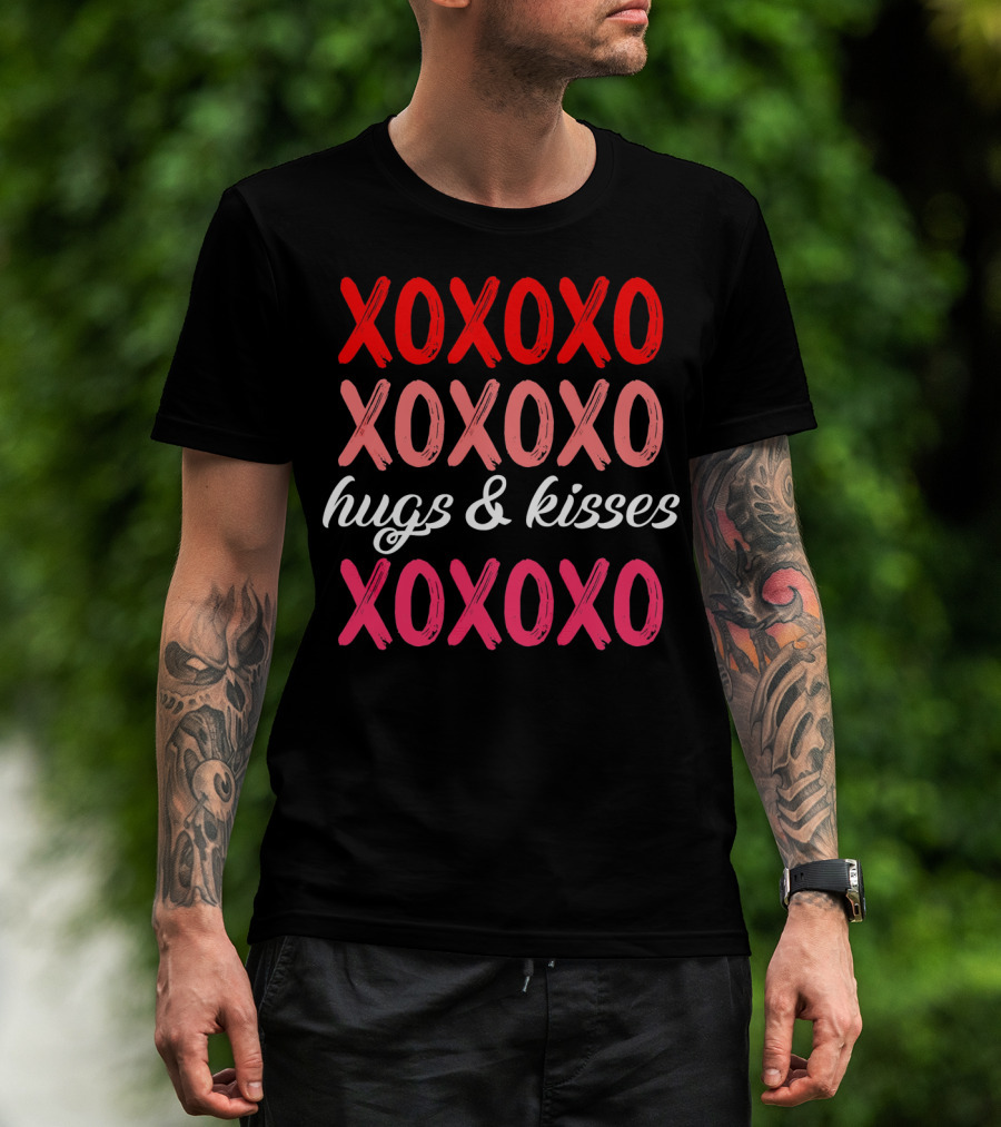 XOXOXO Hugs Kisses Valentines Red Pink White T-Shirt