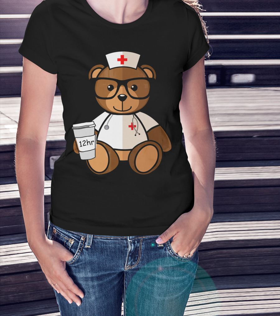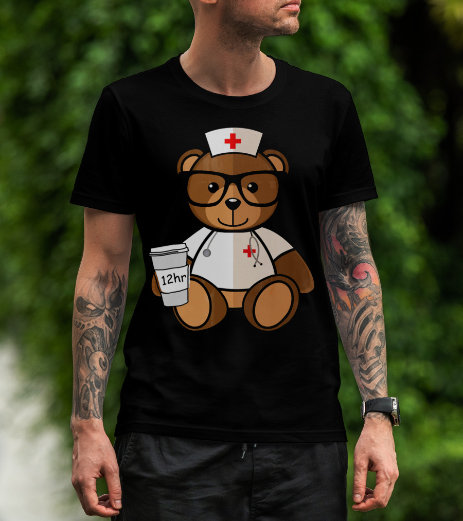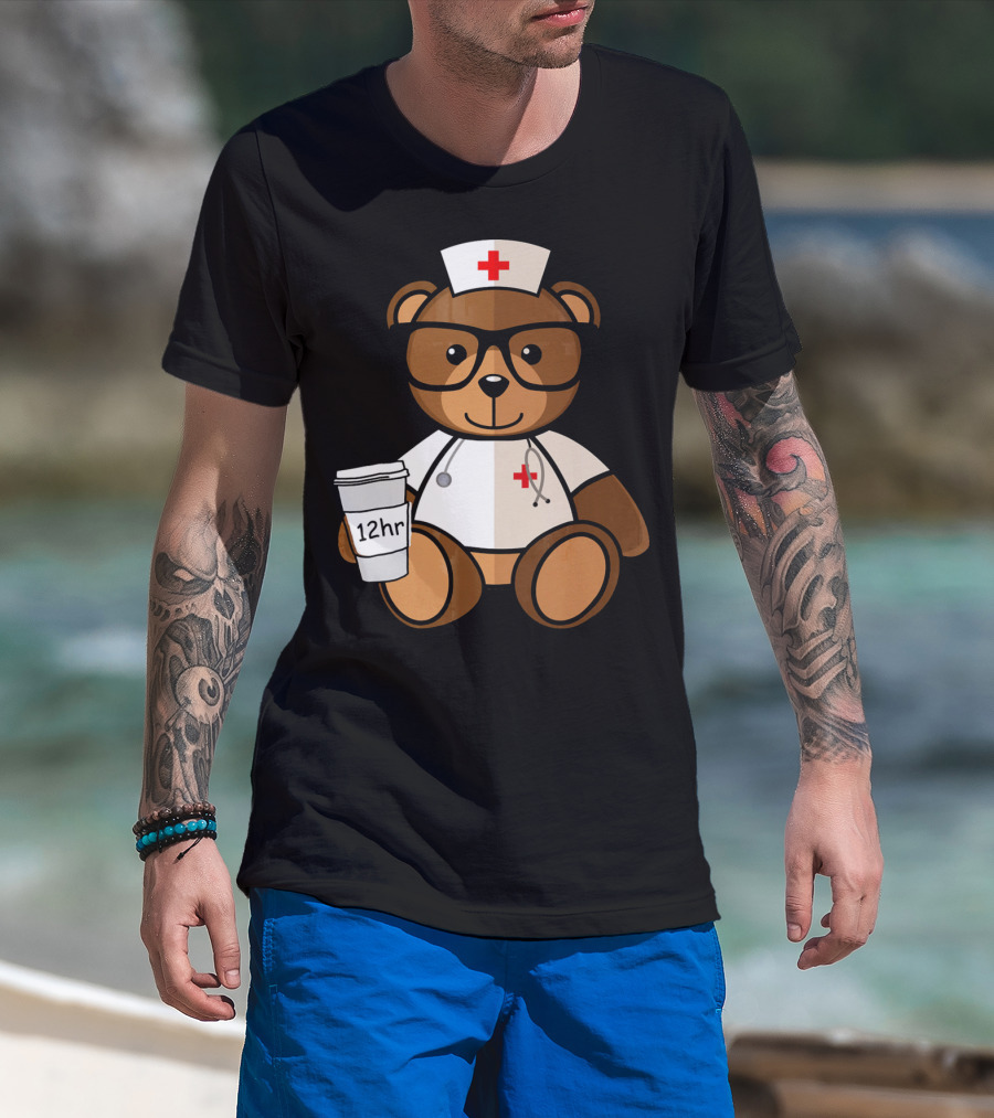Teddy Bear Nurse With 12hr Coffee Cup And Stethoscope T-Shirt