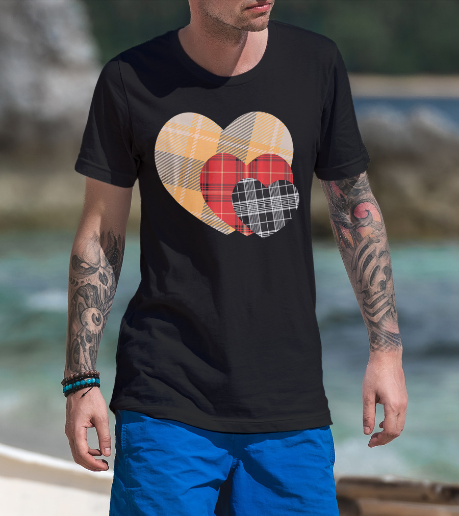 The Three Valentines Hearts Plaid T-shirt is designed for everyday wear and a consistent fit. Fabric is pre-shrunk ring-spun cotton with durable stitching. See the size chart below for exact measurements.