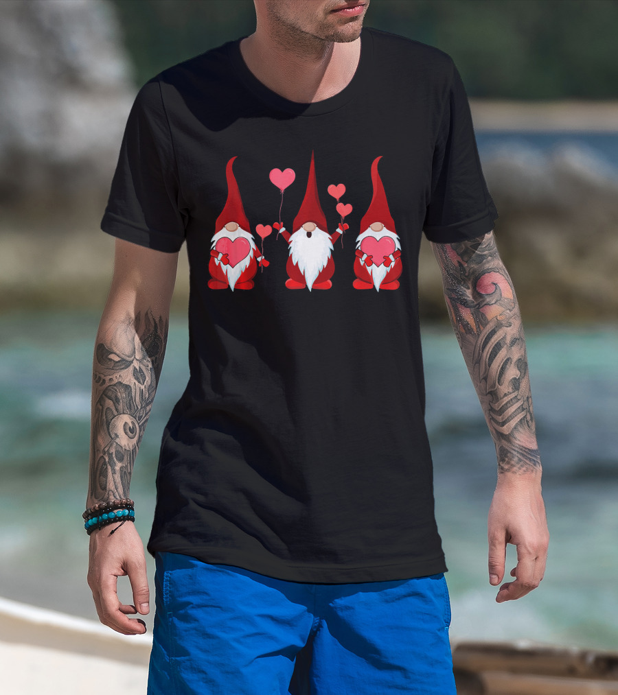 Tree Gnomes Holding Heart Balloons Valentines T-Shirt