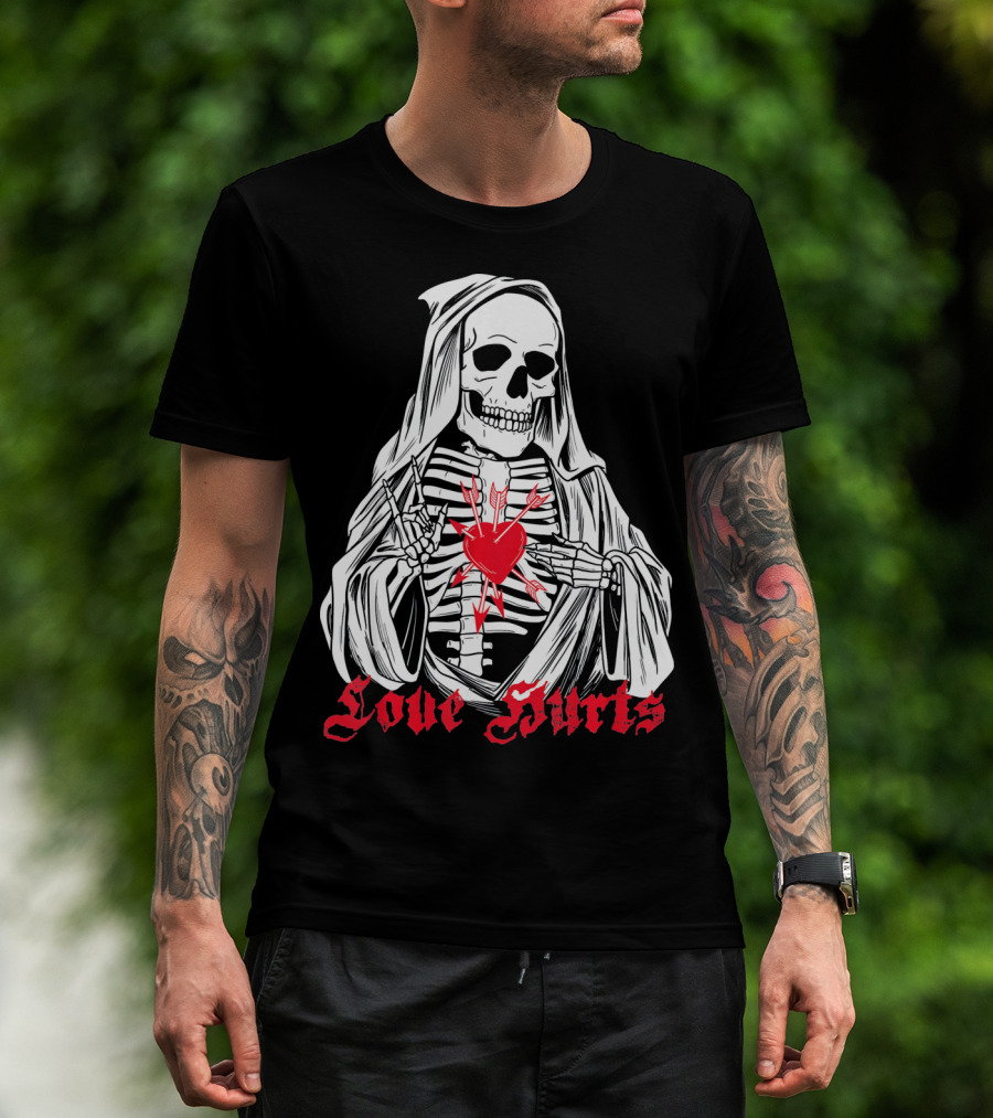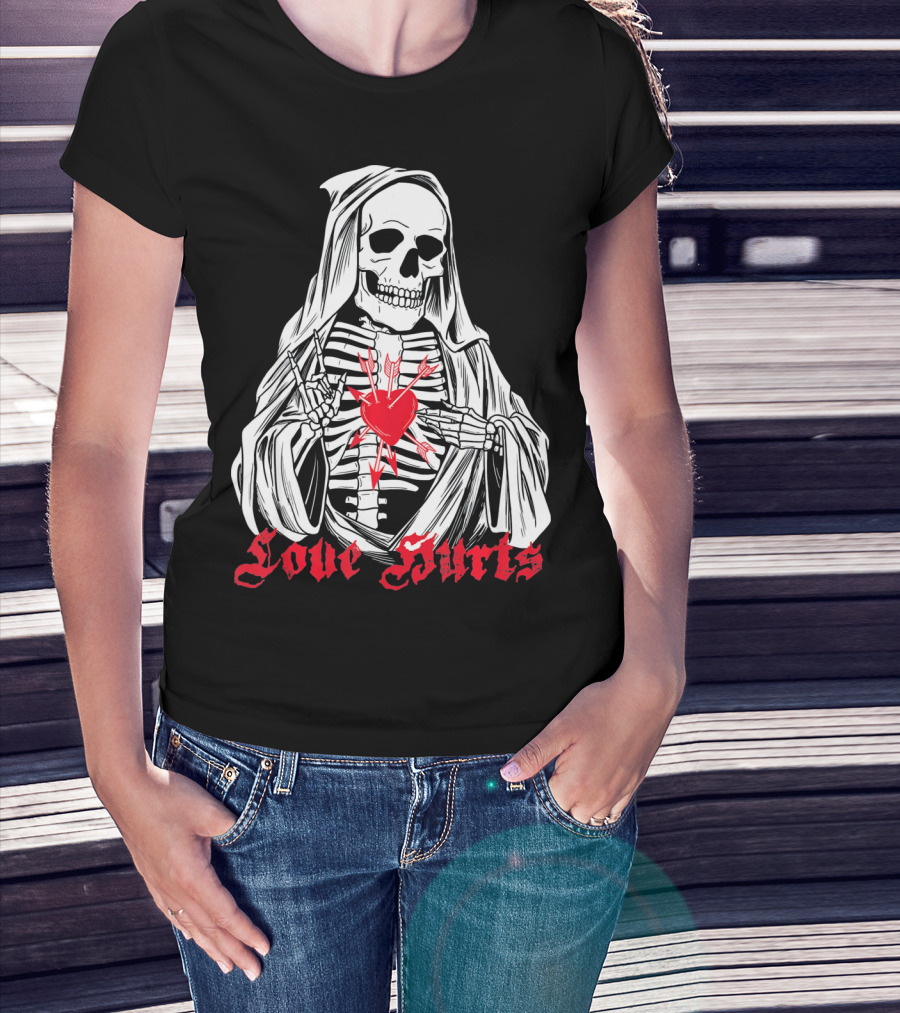 Love Hurts Grim Reaper Skull Heart Arrows Death T-Shirt