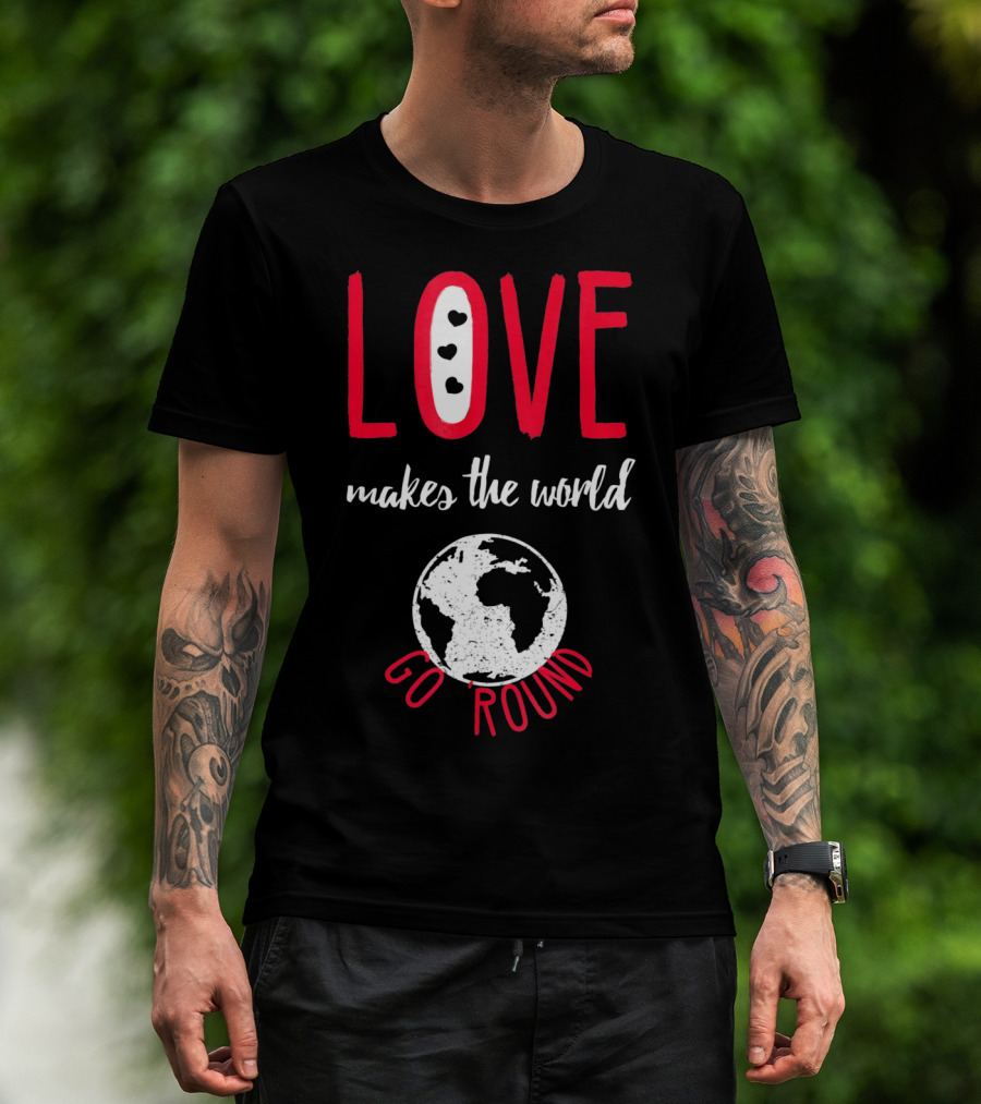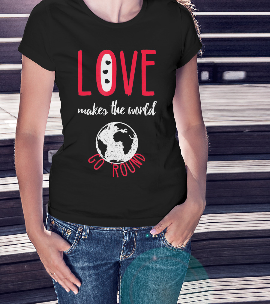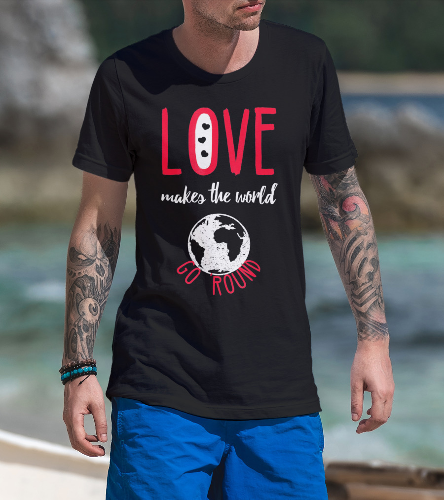 The Love Makes the World Go Round Earth Heart T-shirt is designed for everyday wear and a consistent fit. Fabric is pre-shrunk ring-spun cotton with durable stitching. See the size chart below for exact measurements.