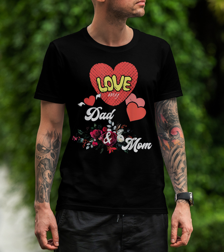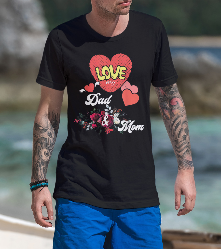 LOVE My Dad And Mom Valentine's Hearts Floral T-Shirt