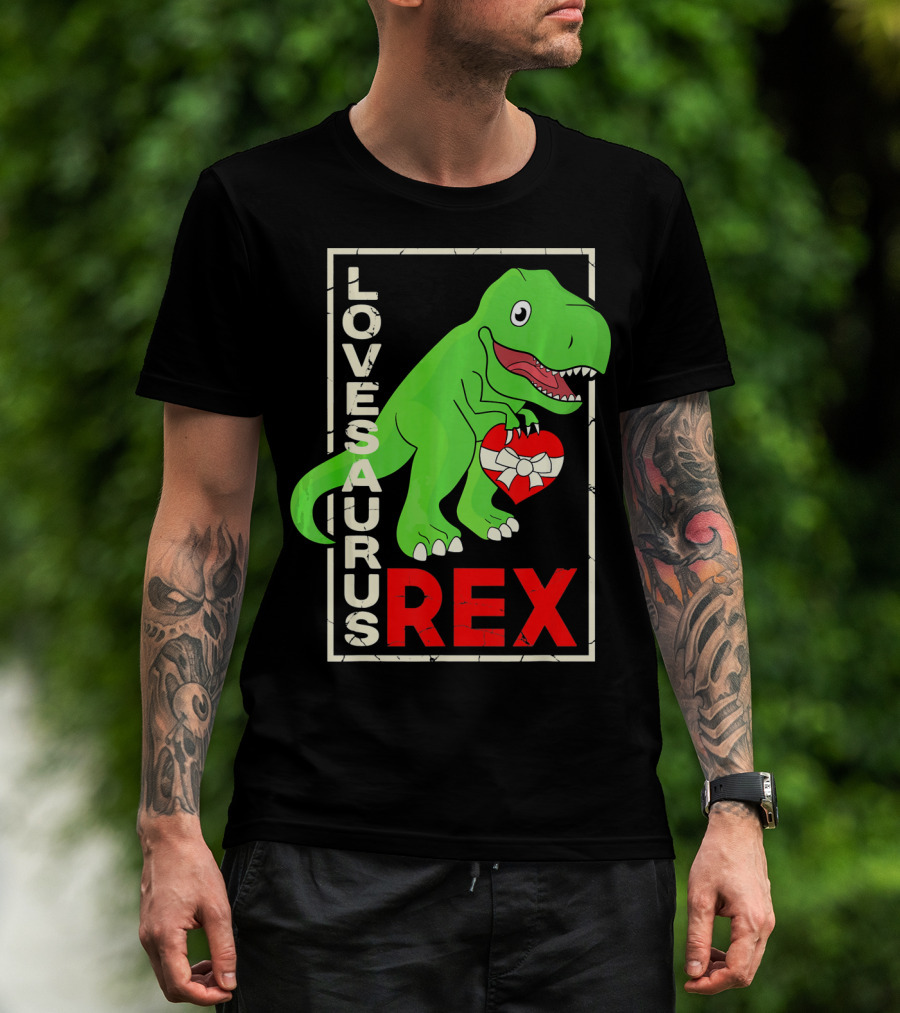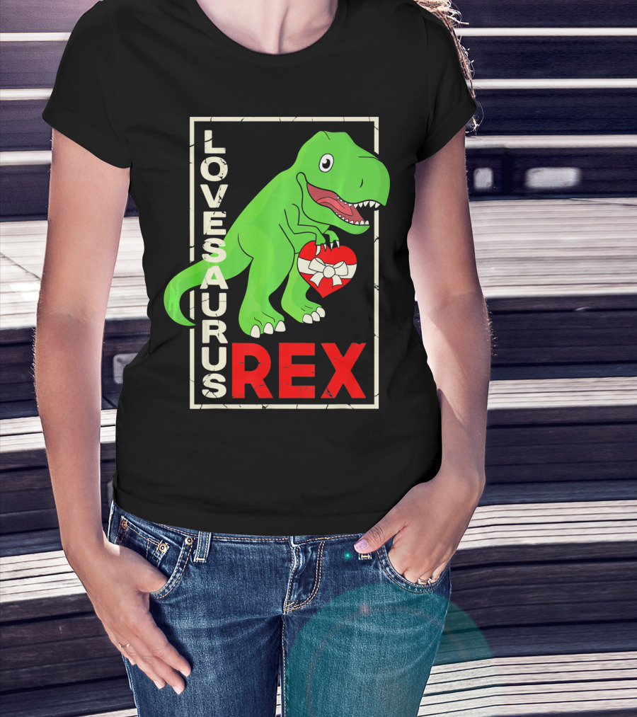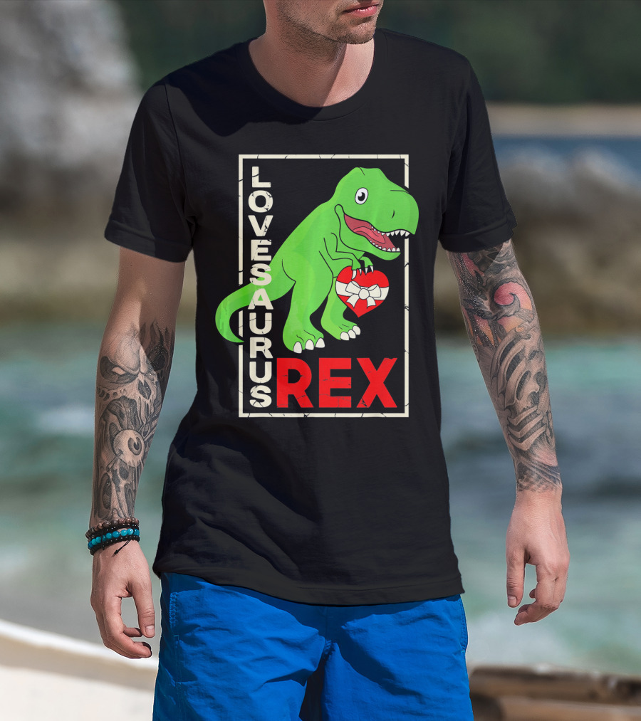 Lovesaurus Rex Dinosaur Valentin Holding Heart T-Shirt